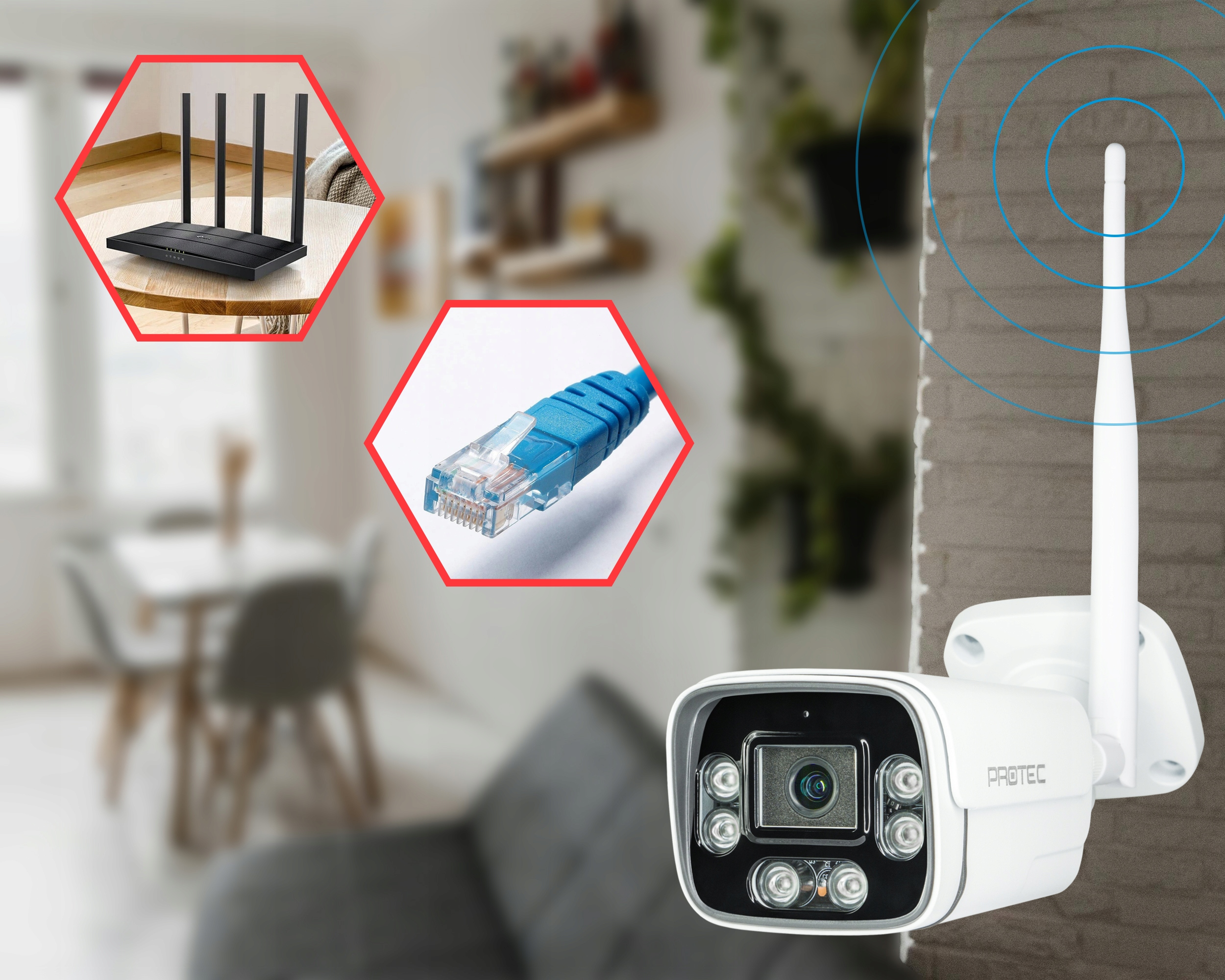 Kamerę możesz podłączyć zarówno bezprzewodowo przez WiFi (2,4Ghz), jak i przewodowo za pomocą kabla UTP (Ethernet). Dzięki temu użytkownik ma swobodę wyboru najlepszego rozwiązania w zależności od warunków instalacji. Połączenie przewodowe zapewnia stabilność transmisji, natomiast WiFi umożliwia łatwy montaż bez konieczności prowadzenia dodatkowego okablowania.