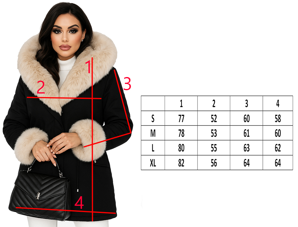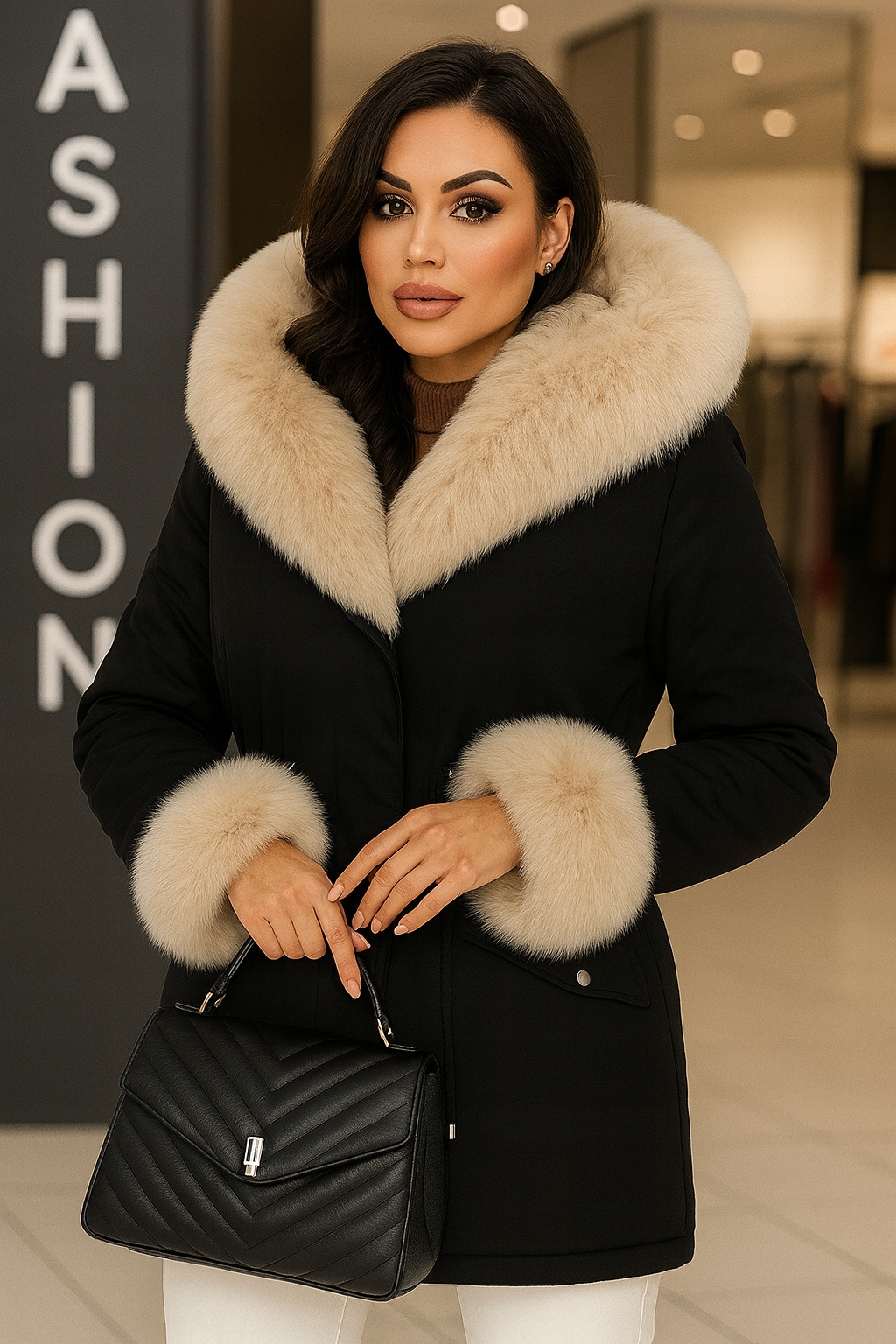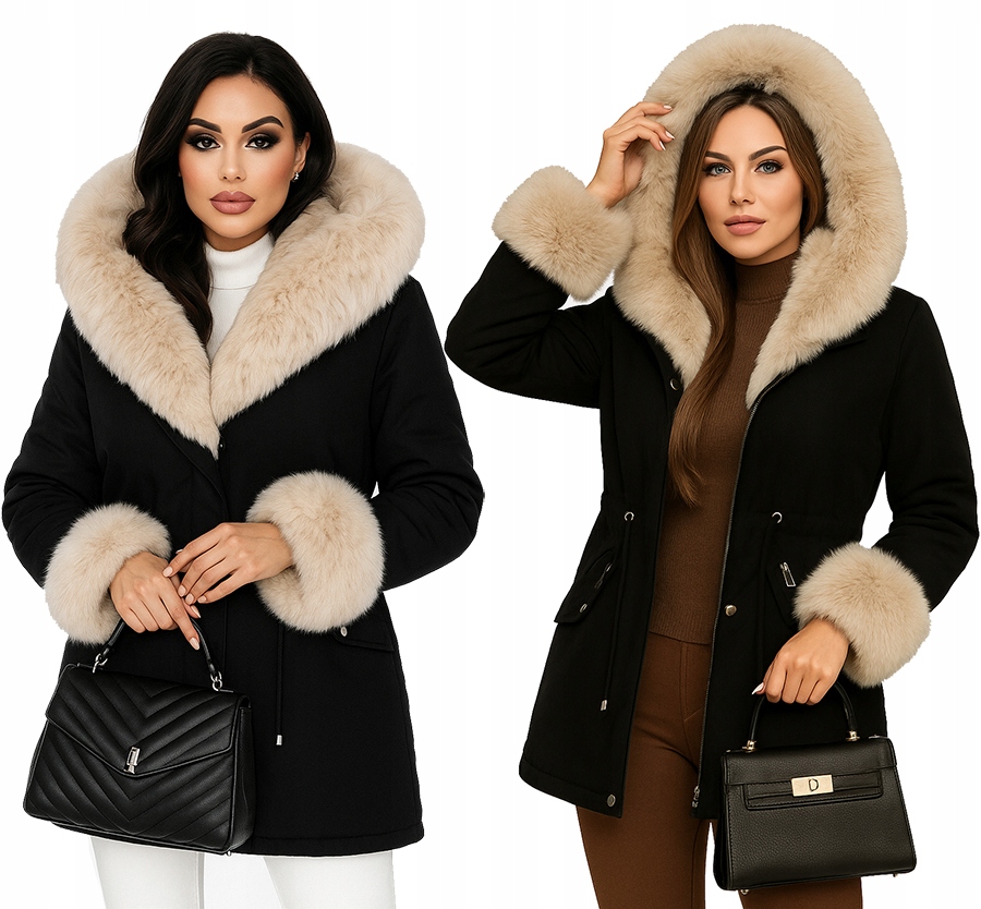 KURTKA DAMSKA ZIMOWA, BARDZO CIEPŁA Z EFEKTOWNYM FUTREM