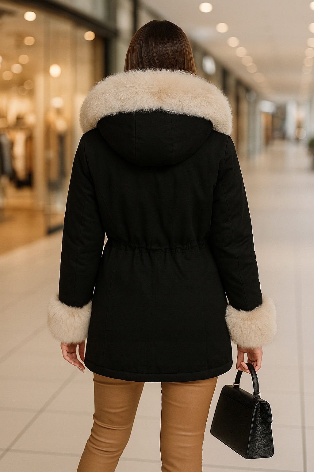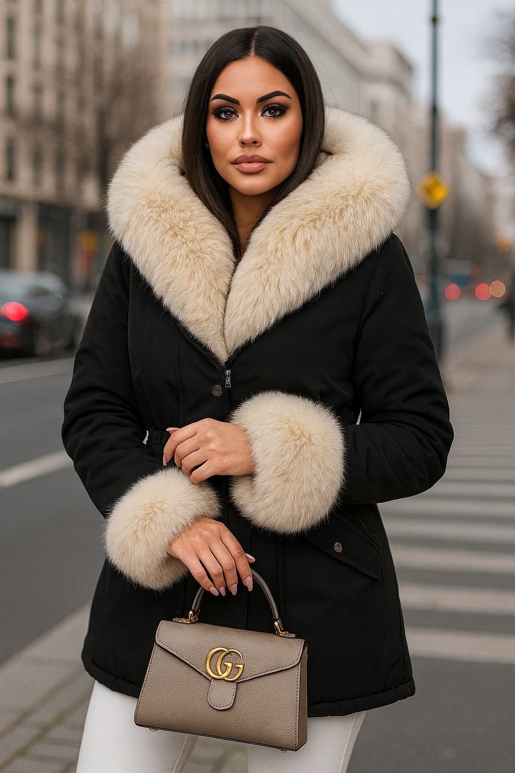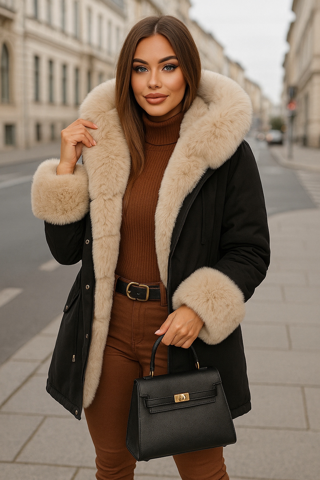 KURTKA DAMSKA ZIMOWA, BARDZO CIEPŁA Z EFEKTOWNYM FUTREM