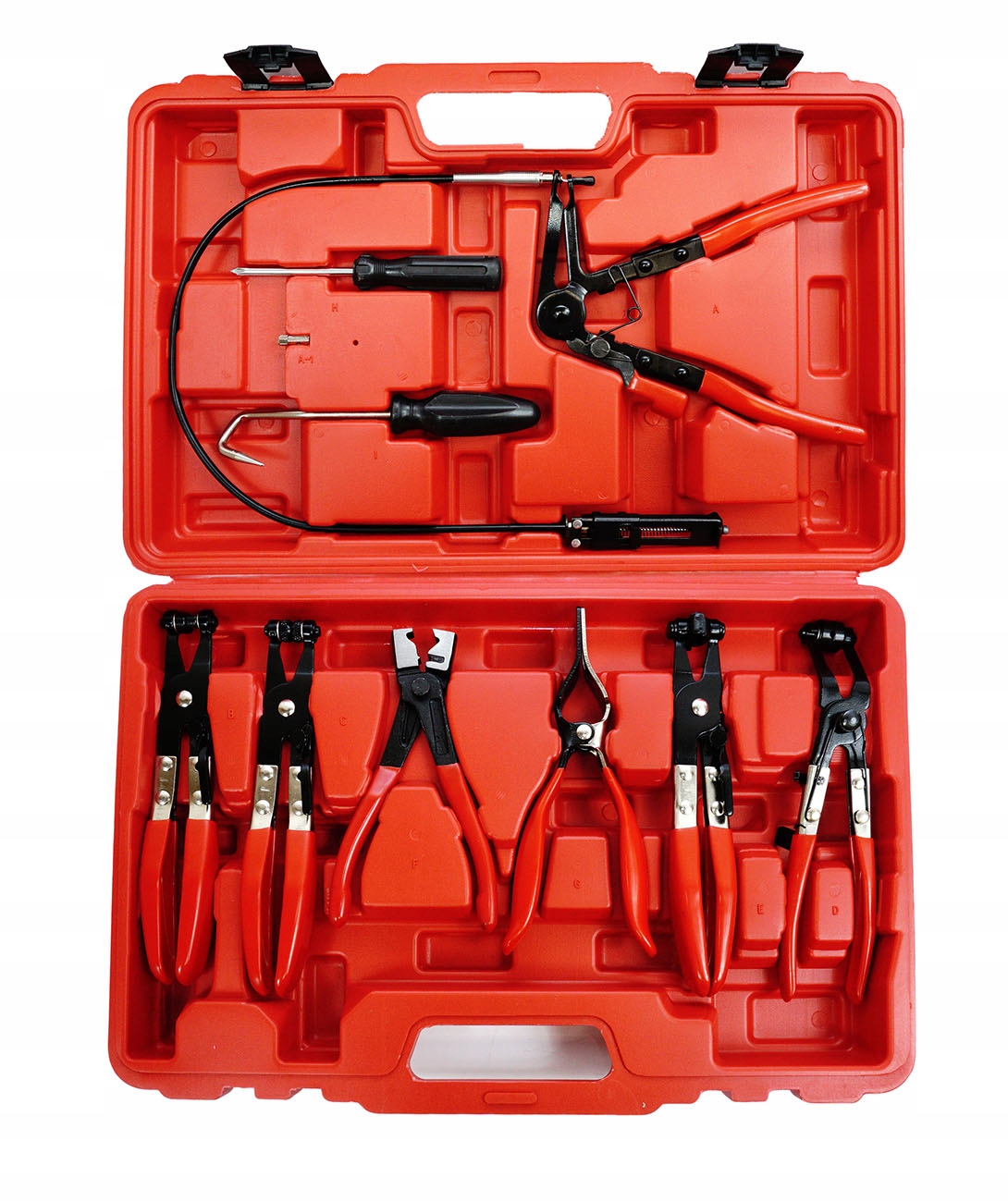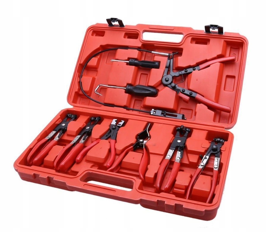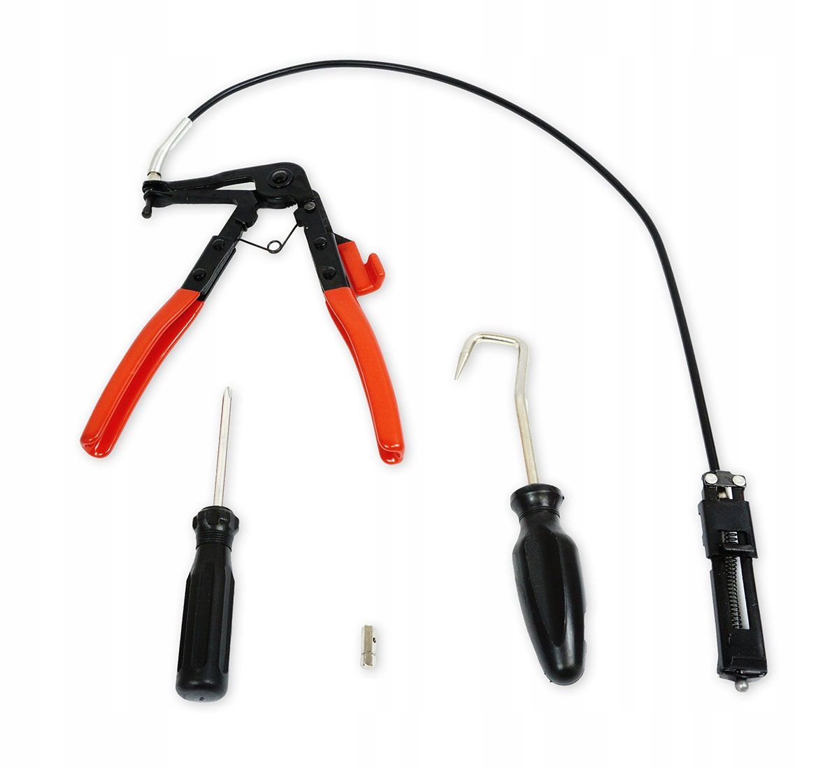 Wygięte szczypce do wąskich opasek zaciskowych.