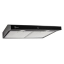 Nowoczesny okap podszafkowy ze sterowaniem elektronicznym. Bardzo estetyczny panel sterujący, wykonany z czarnego szkła. Panel elektroniczny podświetla się w czasie użytkowania okapu.