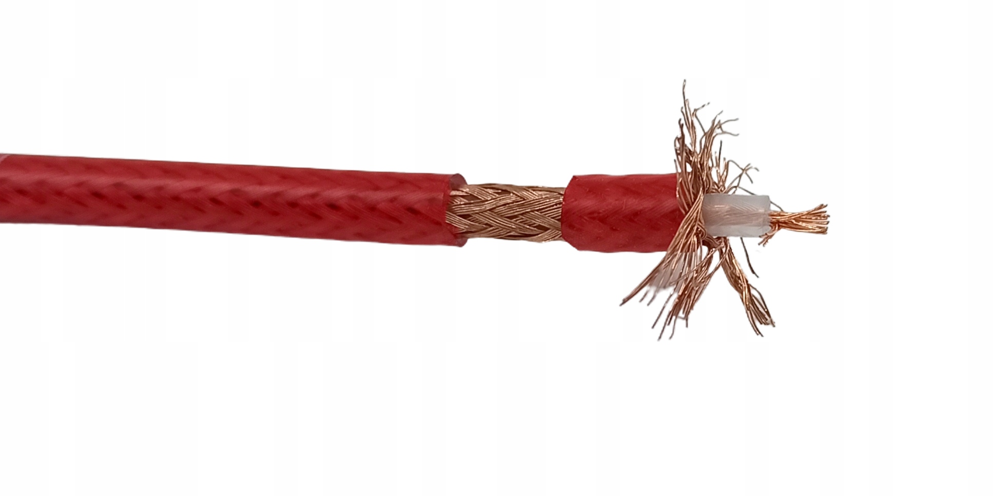 RG 58 RED to wysokiej klasy przewód 50 Ω typu RG 58 dla najbardziej wymagających użytkowników takich kabli. Żyła wewnętrzna to linka bardzo precyzyjnie skręcona z drutów wykonanych z najwyższej klasy miedzi beztlenowej ( średnica zewnętrzna 0,9 mm ). Dla zasygnalizowania wysokiej jakości wykonania, bardzo dobrych parametrów oraz wyróżnienia produktu na rynku powłoka zewnętrzna tego przewodu jest nietypowa – transparentna z lekkim zabarwieniem na czerwono ( oczywiście przewód można stosować również na zewnątrz, powłoka jest odporna na promieniowanie UV ). Ekran RG 58 RED jest wykonany z bardzo gęstego oplotu ( 98% ), a druty w pasemkach oplotu mają średnicę aż 0,16 mm. Połączenie tych wszystkich czynników pozwoliło stworzyć znakomity kabel nie mający sobie równych w tym przedziale cenowym.