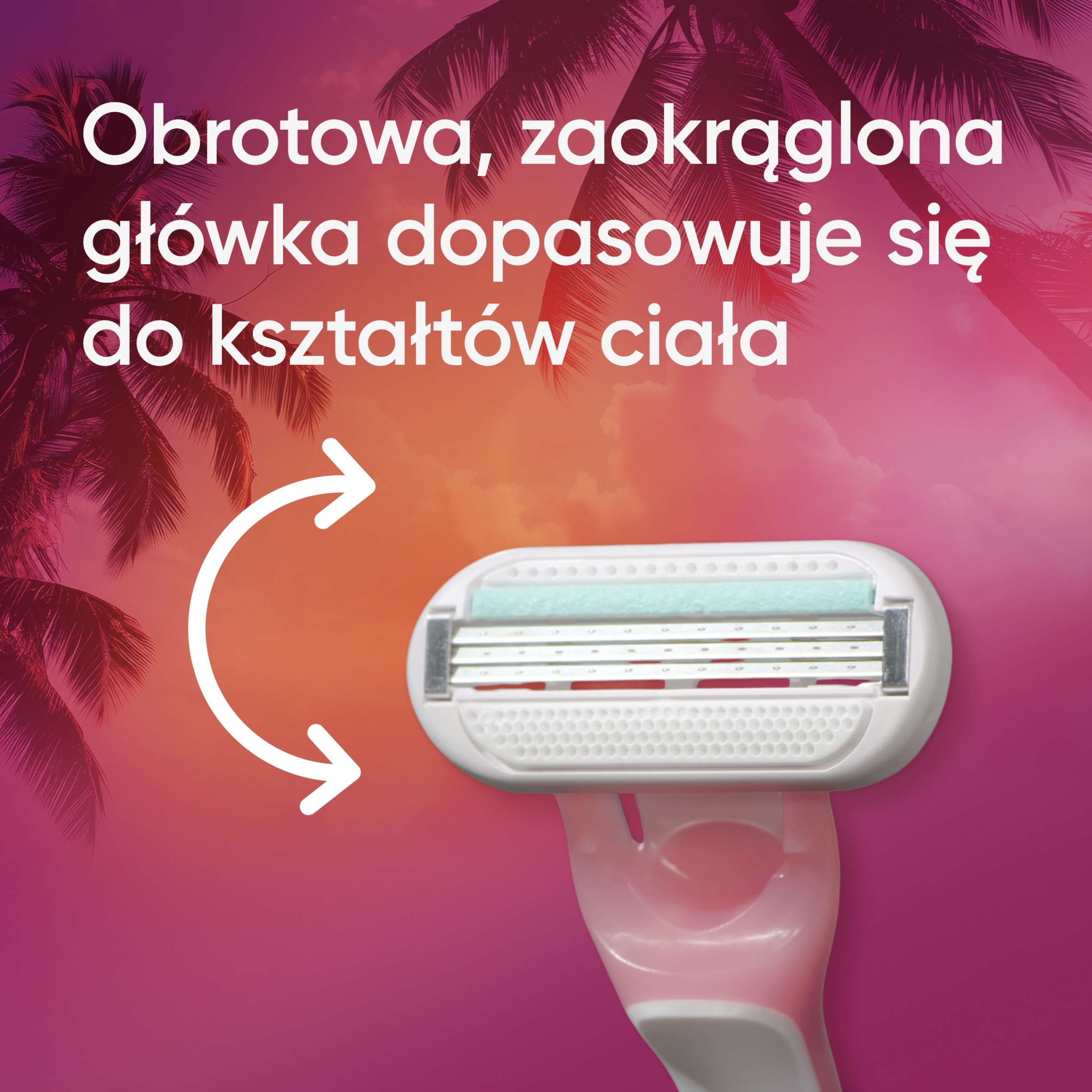 Gillette Venus Smooth Miami, 3 szt., Golenie dla kobiet, Chcesz uzyskać gładką ogoloną skórę ciała lub jej części? Maszynka do golenia Gillette Venus Smooth Miami stanowi najprostszy sposób na szybkie, łatwe i bezbolesne uzyskanie gładkiego ciała. Swoimi ostrzami chwyta każdy włos, którego chcesz się pozbyć, precyzyjnie go usuwając. Ciesz się doskonale gładką twarzą, o jakiej marzysz. Właściwości: goli owłosienie pod pachami, na nogach i w miejscach intymnych dociera także do trudno dostępnych miejsc łatwa manipulacja zapewnia dokładne golenie i precyzyjny efekt goli szybko i łatwo Sposób użycia: Użyj pianki do golenia lub kremu i następnie ogol skórę długimi, delikatnymi pociągnięciami.