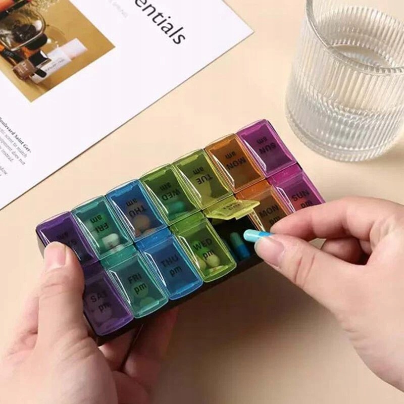 ✔️ Liczba przegródek: 14 (2 na każdy dzień tygodnia)