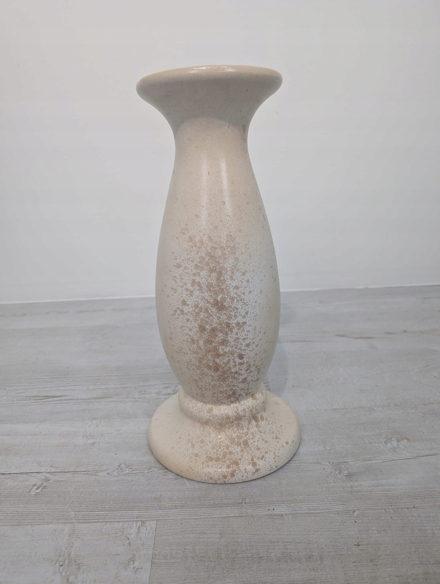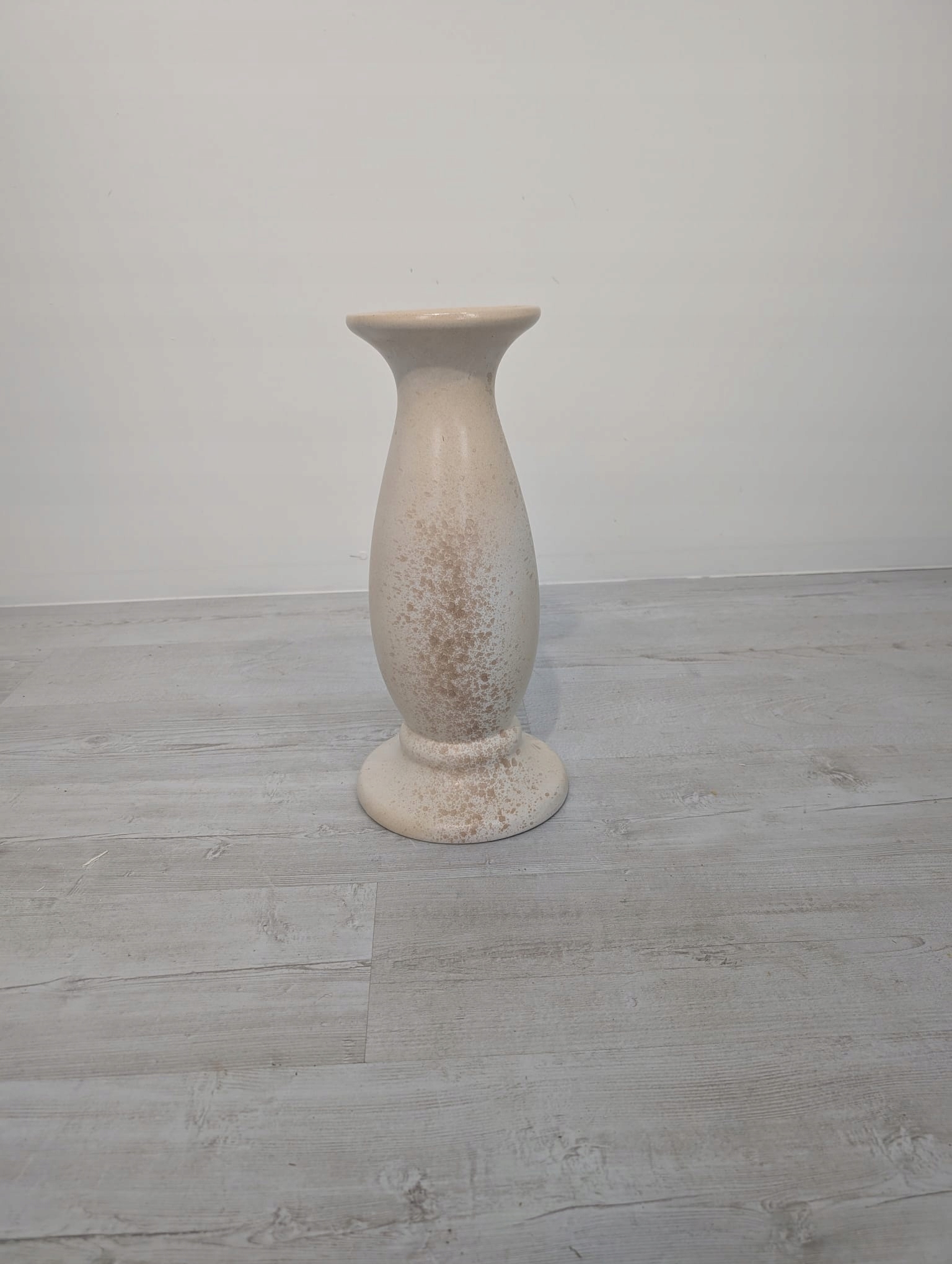 Stylowy, ceramiczny postument w odcieniach beżu i brązu. Posiada charakterystyczny, wysoki kształt z lekko rozszerzającą się górą. Powierzchnia kolumny jest lekko szorstka, nadając mu ciekawy, rustykalno-nowoczesny wygląd.