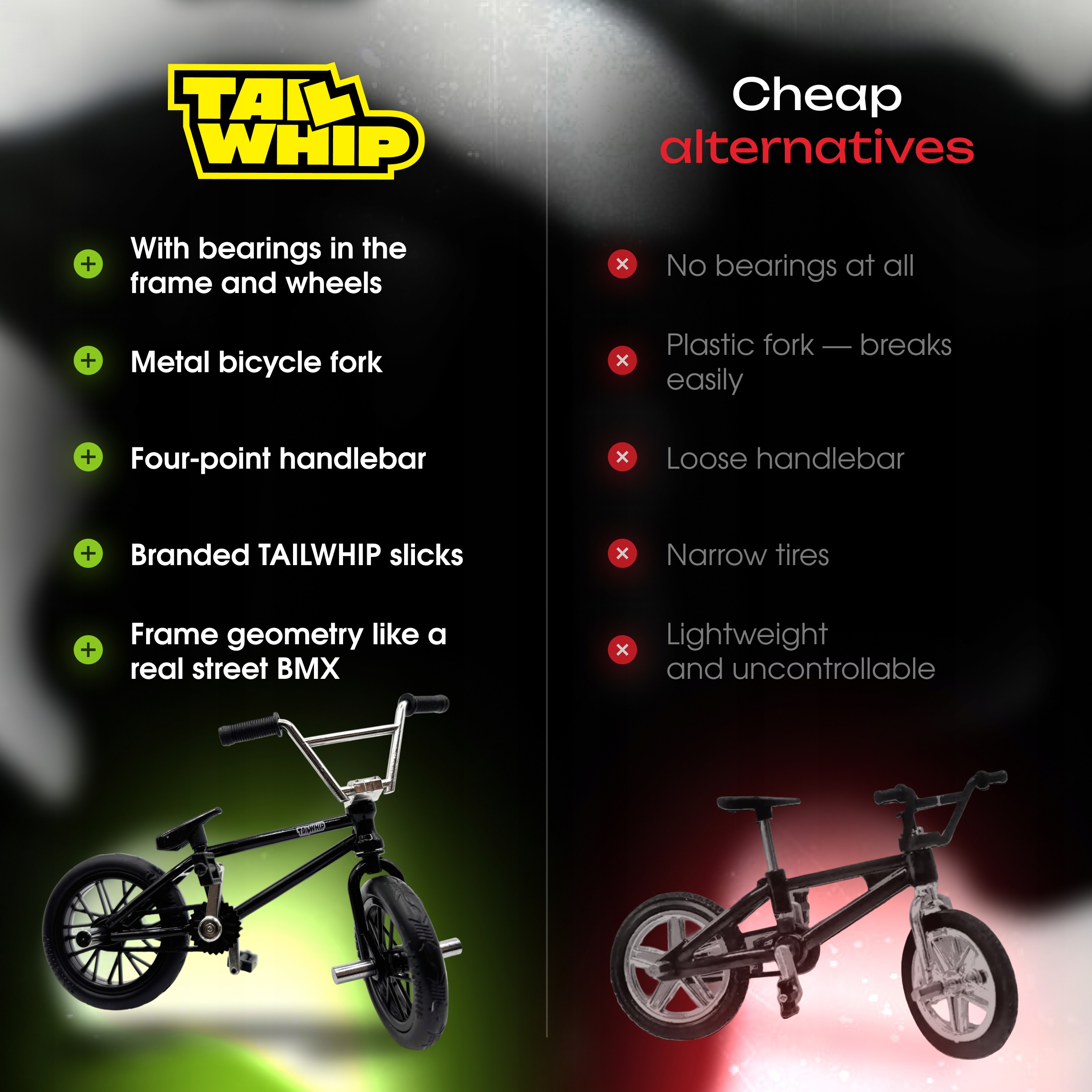 ⚡Fingerbike mini rowerek TAILWHIP®️ dają mnóstwo zabawy podczas nauki i wykonywania trików palcami.