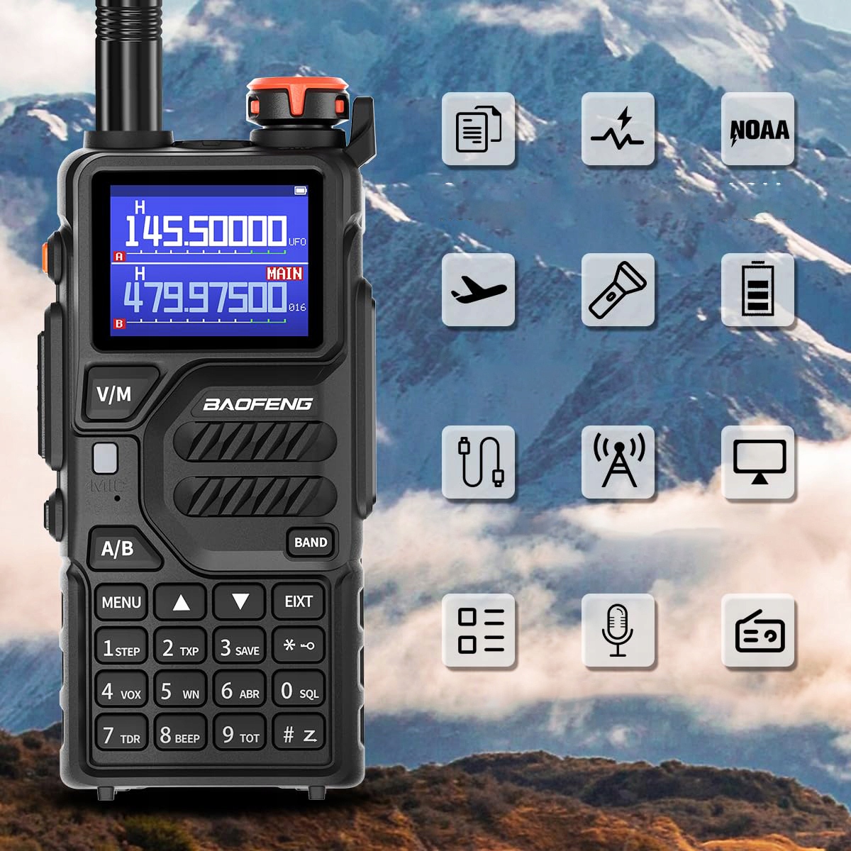 Urządzenie oferuje aż 999 kanałów, obsługuje pasmo lotnicze i radio FM, a także posiada: