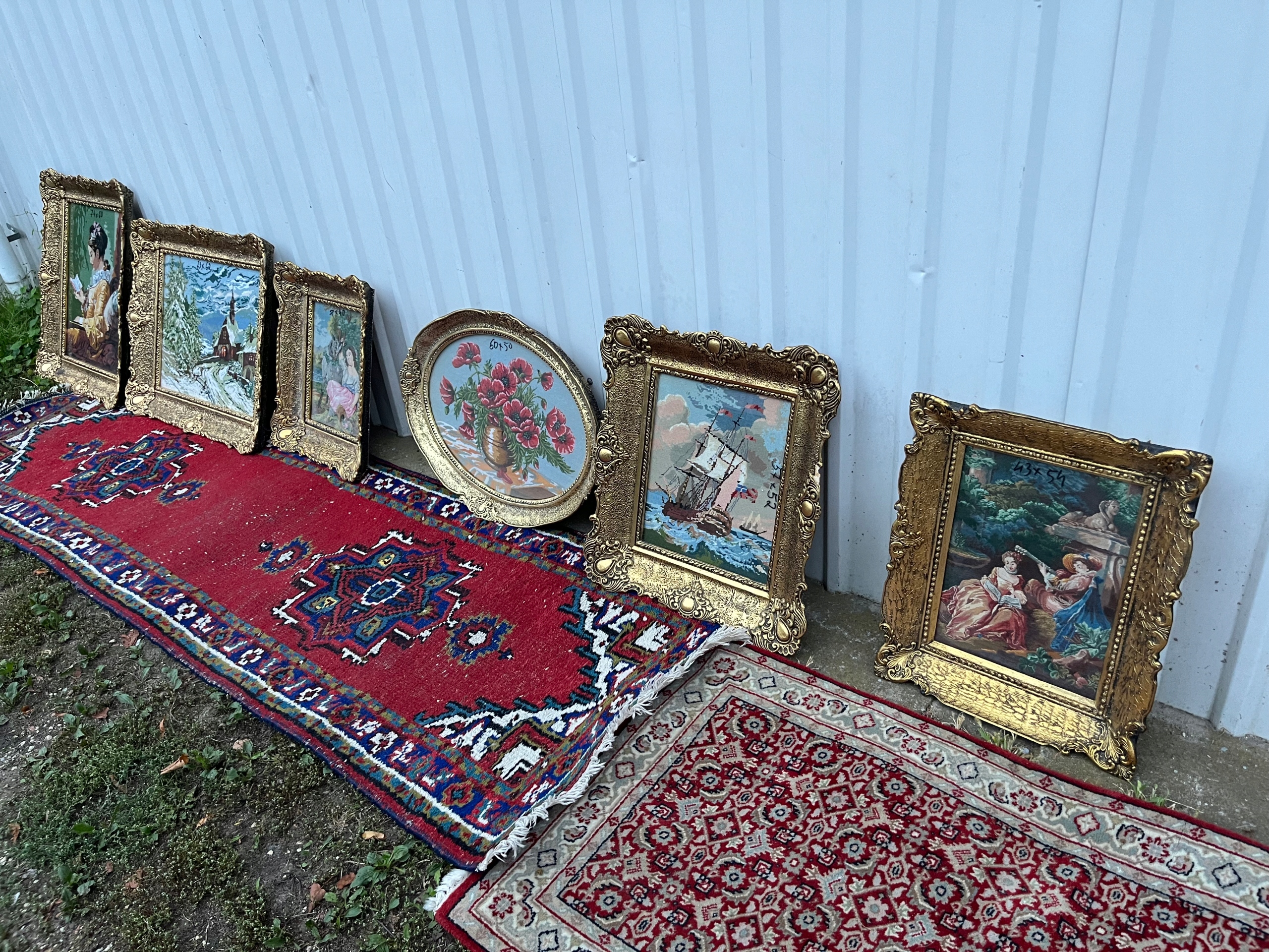 widoczne na zdjęciach stare obrazy tkane . Stan bardzo dobry , bez uszkodzeń wszystkie za szklana szyba .Cena za szt