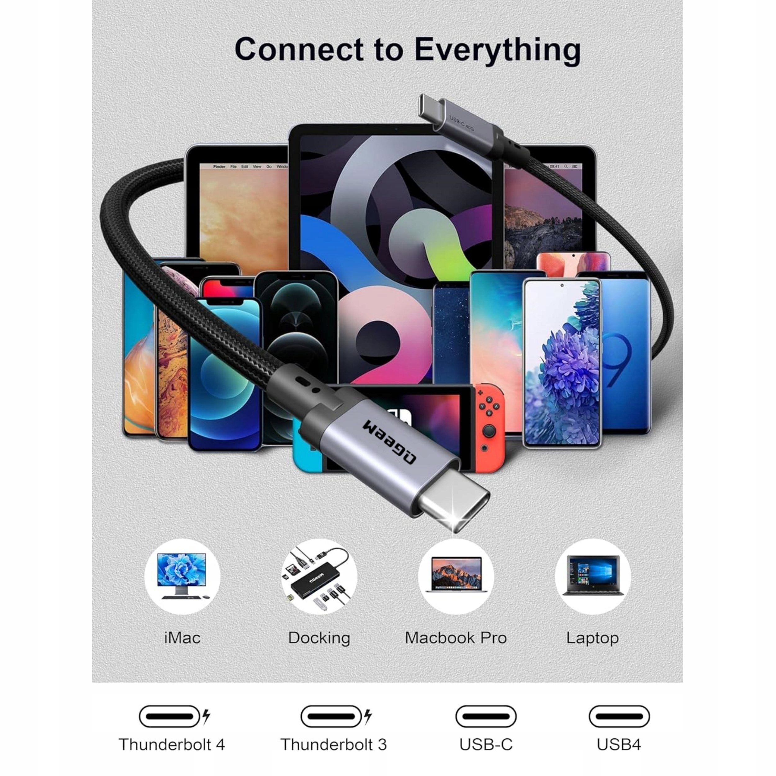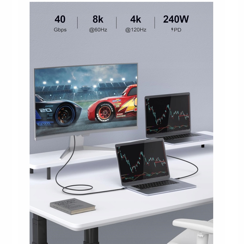 Najwyższej jakości kabel USB typu C w standardzie USB 4.0, umożliwiający transmisję danych z prędkością do 40 Gb/s oraz nieprawdopodobnie szybkie i bezpieczne ładowanie 240W 5A. Kabel zapewnia obsługę rozdzielczości do 8K przy 60Hz.