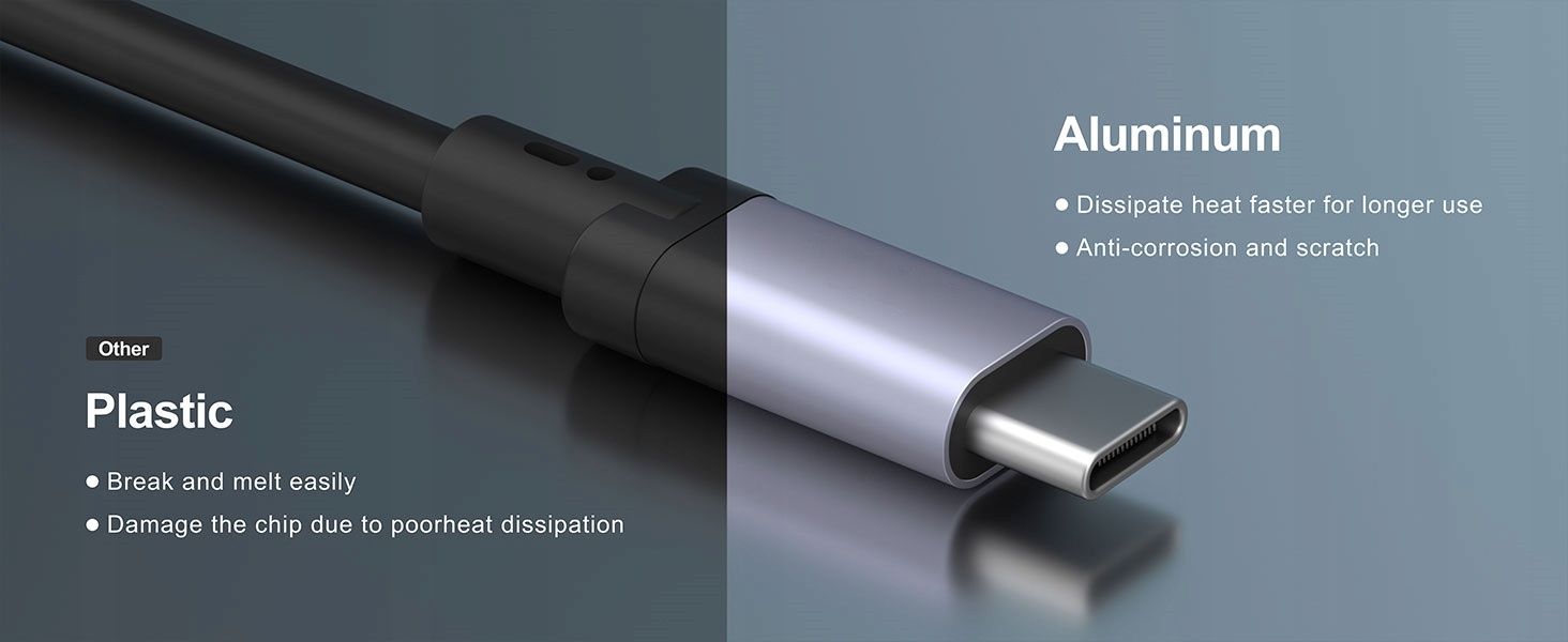 Kabel umożliwia bezpieczne zasilanie urządzeń z pełną mocą do 100W. Wbudowany rezystor bezpieczeństwa stabilizuje napięcie prądu w granicach 5A, zapobiegając zakłóceniom oraz chroniąc podłączone urządzenia. Umożliwia ultra-szybkie ładowanie smartfonów, tabletów oraz