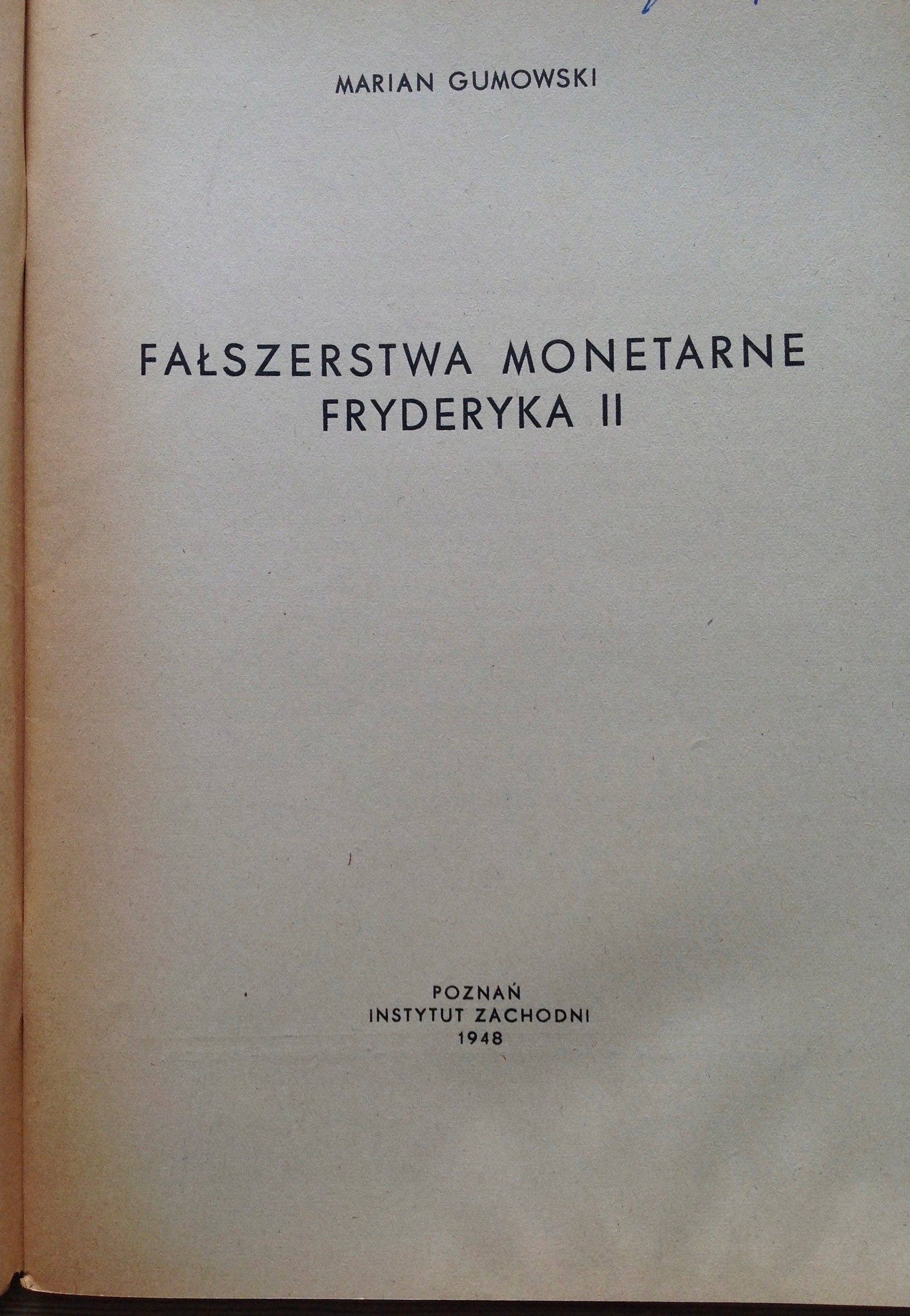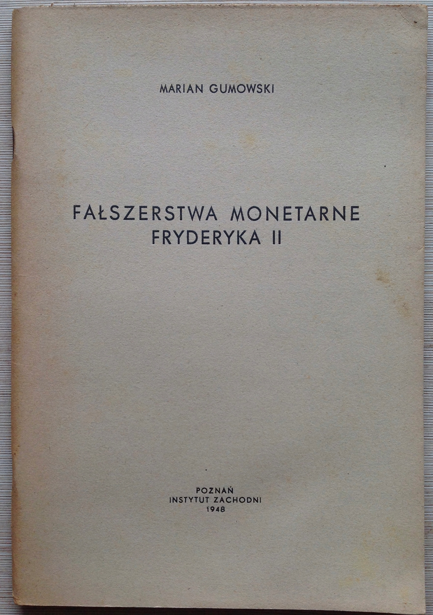 Marian Gumowski Fałszerstwa Monetarne Fryderyka II Poznań 1948