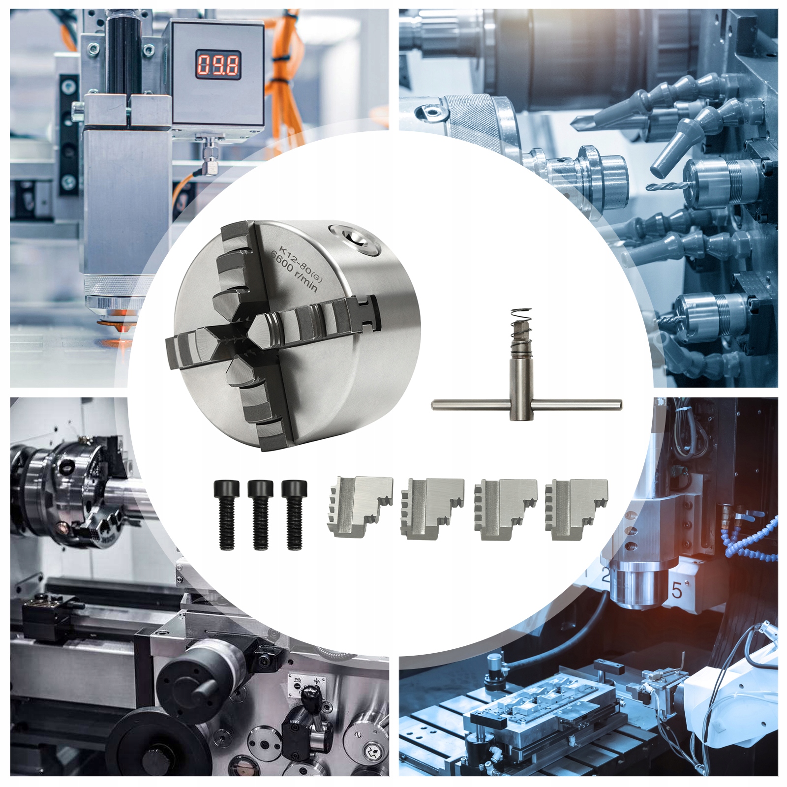 Ten 4-szczękowy uchwyt samocentrujący zapewnia stabilne wsparcie dla precyzyjnej obróbki. Wykonany jest z wysokiej klasy materiałów, aby zapewnić długotrwałe użytkowanie bez deformacji i nadaje się do szerokiej gamy obrabiarek. Szeroki zakres mocowania można łatwo regulować, aby zaspokoić potrzeby mocowania różnych rozmiarów przedmiotów obrabianych, dając bardziej stabilną, wygodną i dokładną wydajność mocowania, co czyni go idealnym wyborem dla Ciebie w celu poprawy wydajności pracy i dokładności obróbki.