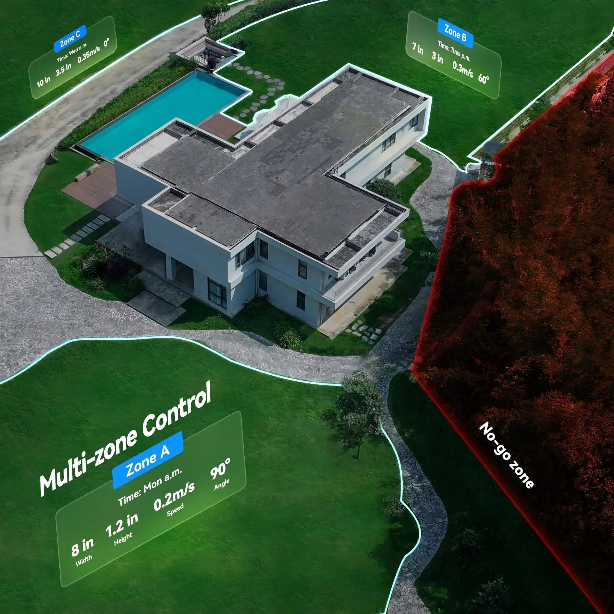 Dzięki zaawansowanym technologiom wizualnym i przestrzennym Neomow X SE "rozumie" swoje otoczenie jak ludzkie oko. Obsługuje dokładne mapowanie obszarów do 3000 m² i zapewnia ciągłe pozycjonowanie z dokładnością do centymetrów. Korzystając z aplikacji, możesz indywidualnie tworzyć wiele stref pracy i definiować ograniczenia dotyczące basenów, kwietników i obszarów zabaw – z których wszystkie są precyzyjnie rozpoznawane. Funkcja planowania sprawia, że regularna pielęgnacja trawnika jest dziecinnie prosta.