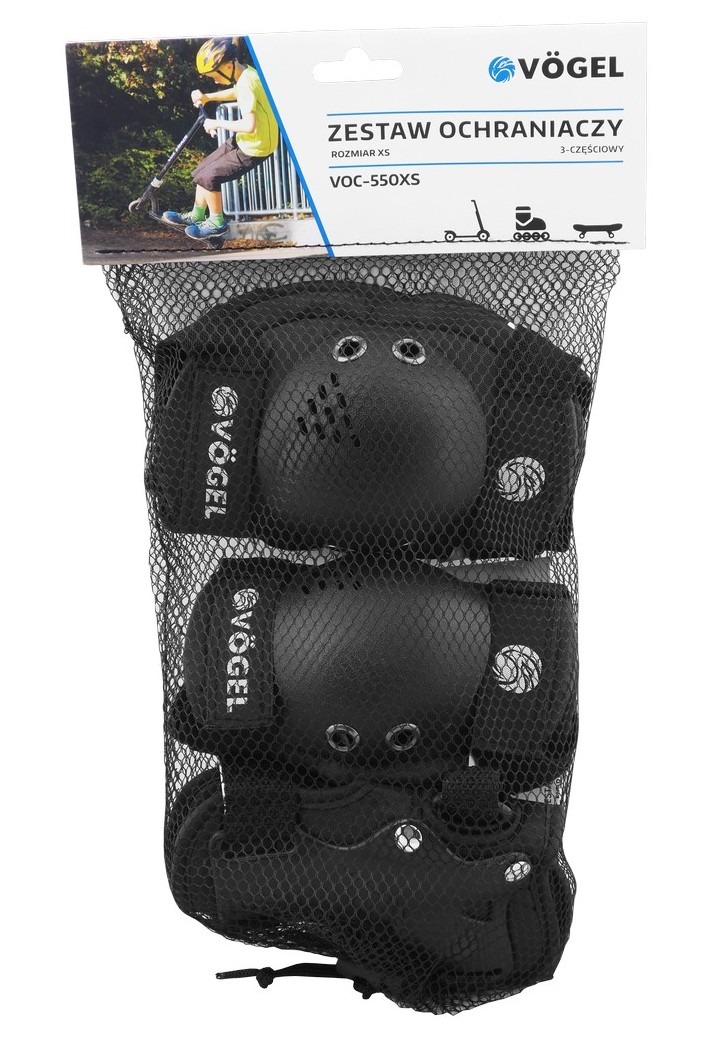 Zestaw ochraniaczy rowerowych marki VÖGEL na nadgarstki, łokcie i kolana. Dobrze wyprofilowana skorupa zaprojektowana została z mocnego i lekkiego tworzywa. Wszystkie ochraniacze wyposażone są w zapięcie na rzepy, dzięki któremu ochraniacze utrzymują się właściwym miejscu. Zaprojektowane tak, aby użytkownik czuł się komfortowo i w maksymalnym stopniu zabezpieczał nadgarstki, łokcie i kolana przed urazami.