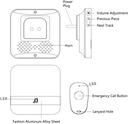 Alarm posiada tryb krótkiego lub ciągłego sygnału oraz wskaźnik niskiego poziomu baterii. To praktyczne rozwiązanie do użytku domowego, w szpitalach, restauracjach czy domach opieki.