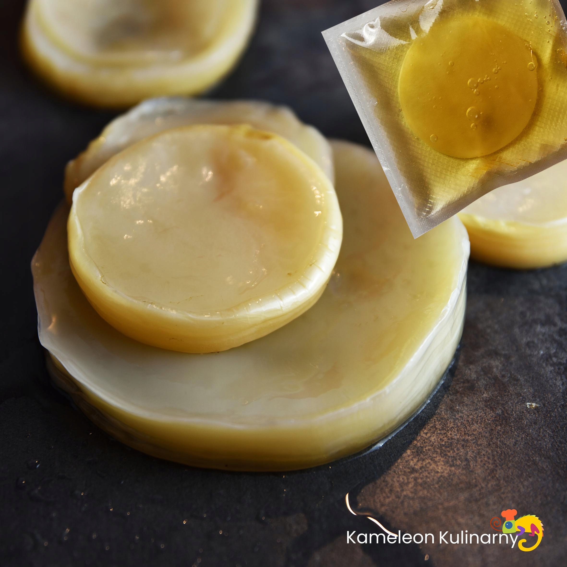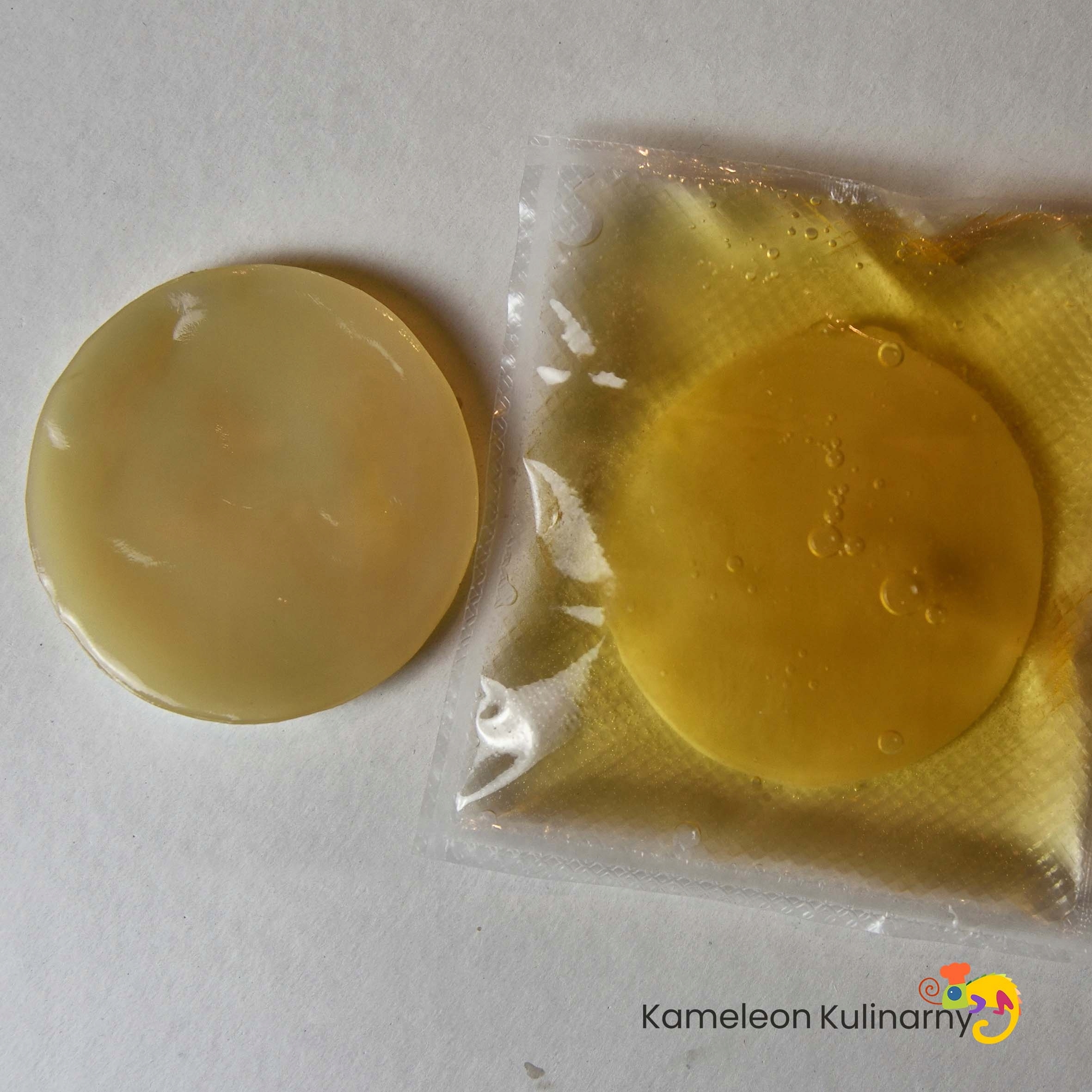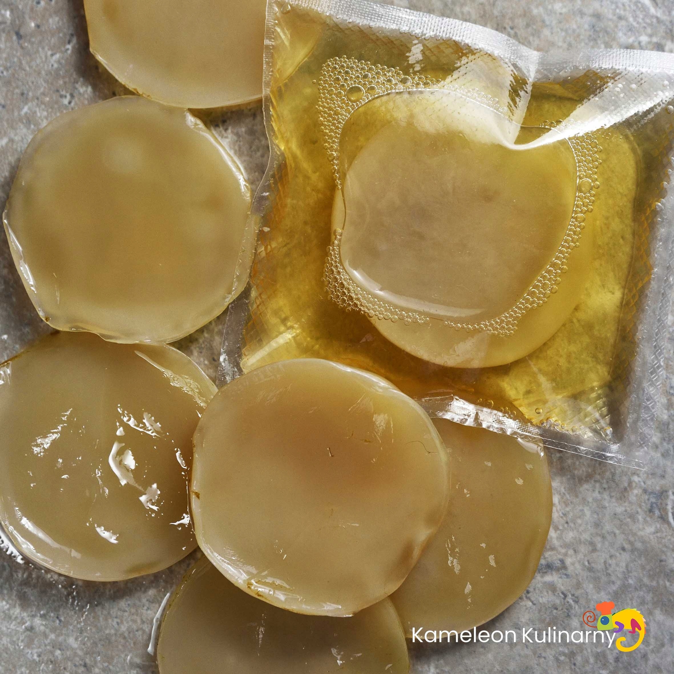 Jest to galaretowany krążek (jeśli produkcja odbywa się w okrągłym naczyniu), o kolorze od biało-pomarańczowego do brązowego, o średnicy zależnej od naczynia, w którym powstaje.