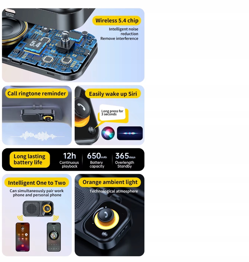 ✅Pojemna bateria 650 mAh – wbudowany akumulator zapewnia nawet 22 godziny ciągłej pracy. Możesz prowadzić długie rozmowy telefoniczne, korzystać z nawigacji głosowej czy słuchać muzyki przez całą podróż bez obaw o rozładowanie urządzenia.