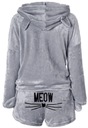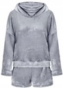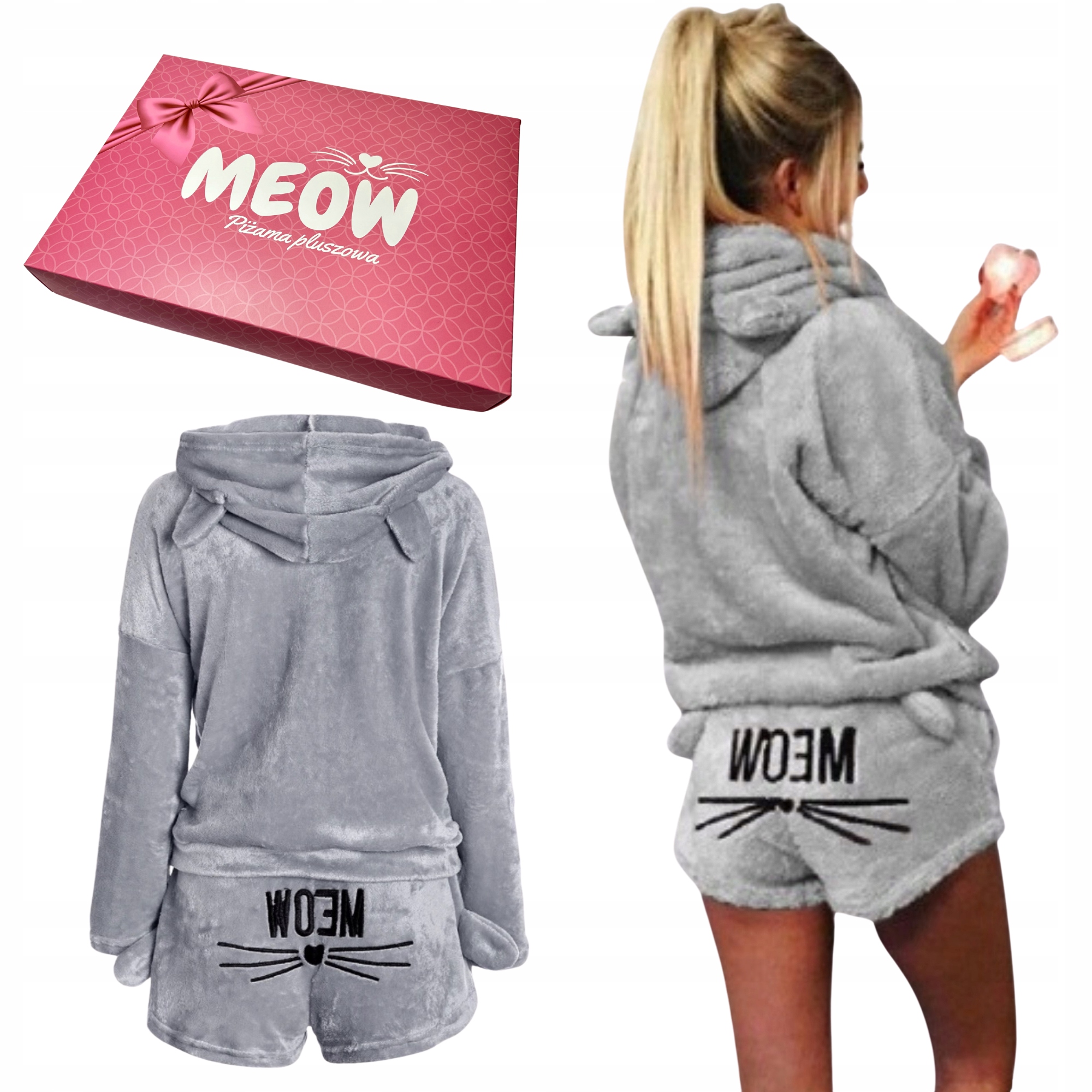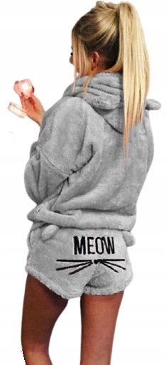 Wygodny, puszysty komplet, składający się z bluzy i spodenek w kolorze szarym w rozmiarze L. Piżama wykonana jest z przyjemnego w dotyku materiału, który otuli cię i ogrzeje nie tylko w nocy ale i po kąpieli lub jako strój do wypoczynku. Piżamka z uroczym motywem kota zapewni Ci niezapomniane chwile relaksu i ciepła! Niezaprzeczalnym atutem naszej piżamy jest również jej wygoda noszenia. Nie krępuje ruchów, dzięki czemu poczujesz się w niej niezwykle komfortowo. Zapakowana w piękne pudełko, pozwoli na wręczenie jej jako prezent dla bliskiej osoby!