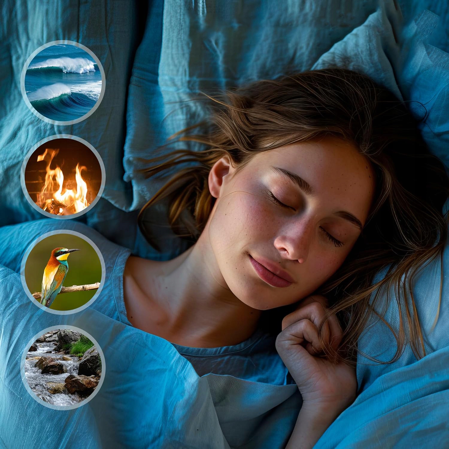 Do wyboru są dźwięki fal, trzaskającego ogniska, ćwierkania ptaków i owadów lub szumiącego strumyka.