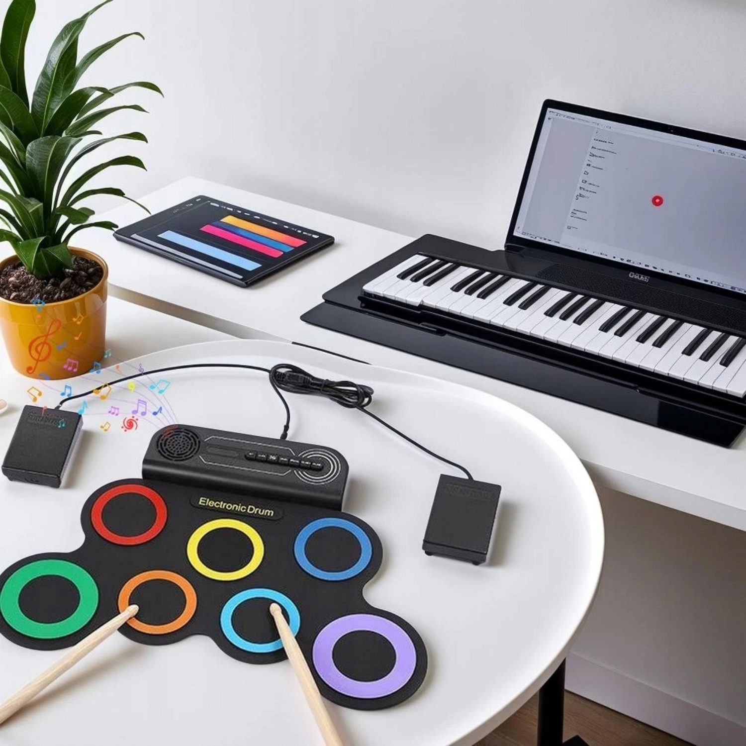 �🎵Pozwól swojemu dziecku odkryć radość gry na perkusji gdziekolwiek i kiedykolwiek! Ten elektroniczny zestaw perkusyjny typu „wszystko w jednym” oferuje realistyczne dźwięki, zwijaną konstrukcję i wbudowane głośniki stereo – idealny dla początkujących, w podróży lub na domowe jam session. Świetny prezent, który pobudzi Twoją muzyczną kreatywność! 🎵