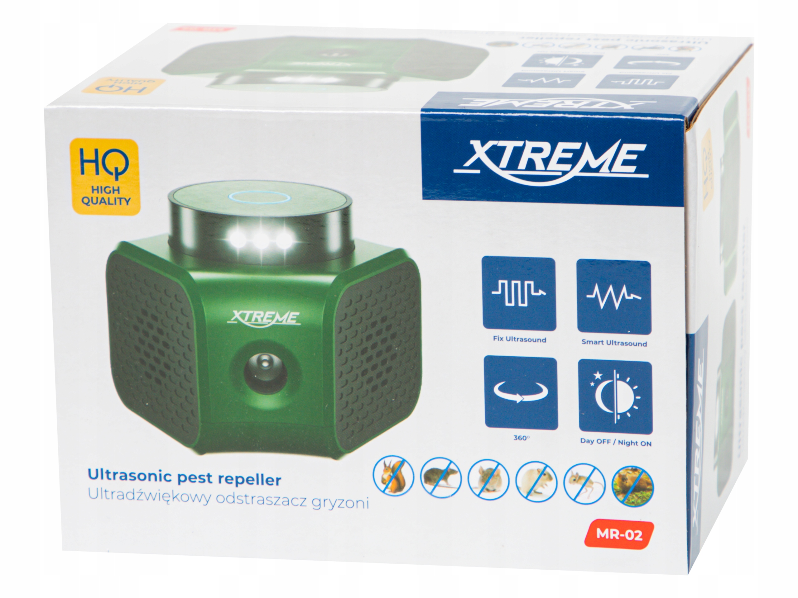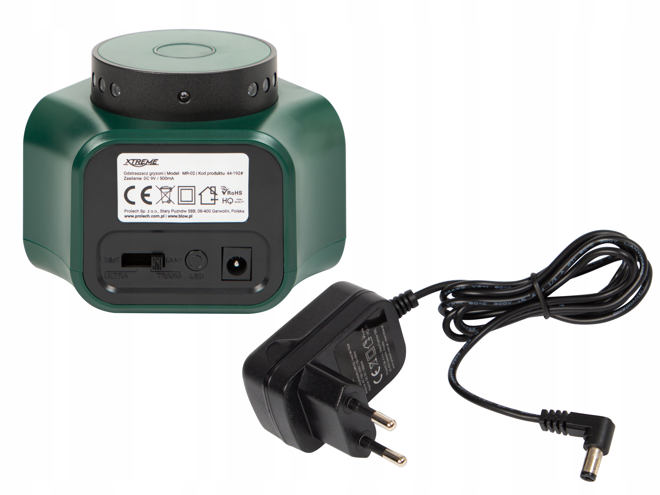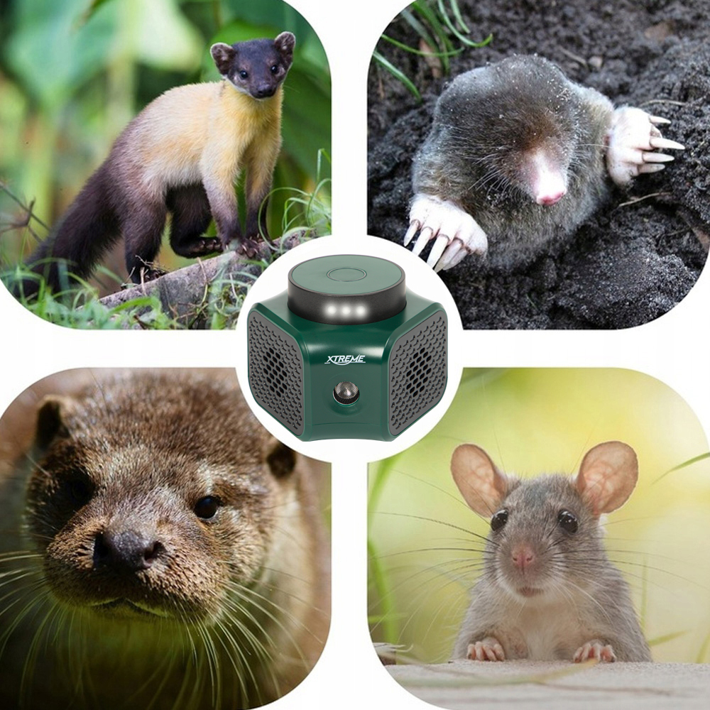 Urządzenie odstrasza dźwiękowo oraz wizualnie gryzonie takie jak myszy, szczury, kuny, łasice, wiewiórki i inne. Posiada detekcję obejmującą 360 stopni. Świetnie sprawdzi się w zamkniętych pomieszczeniach, w każdym domu, piwnicy, garażu czy miejscu pracy. Produkt wysyła sygnały ultradźwiękowe o zmiennej częstotliwości skutecznie odstraszając szkodniki. Posiada kilka trybów pracy, diody LED mogące działać w nocy, głośnik emitujący ultradźwięki oraz transduktory emitujące falę ciśnienia.