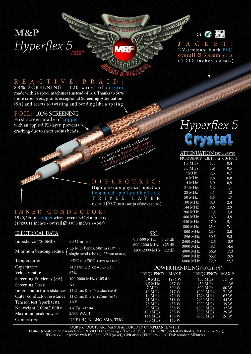 Wysokiej jakości niskostratny kabel antenowy Hyper Flex 5 renomowanej włoskiej firmy Messi & Paoloni jest idealny do montaży anten: