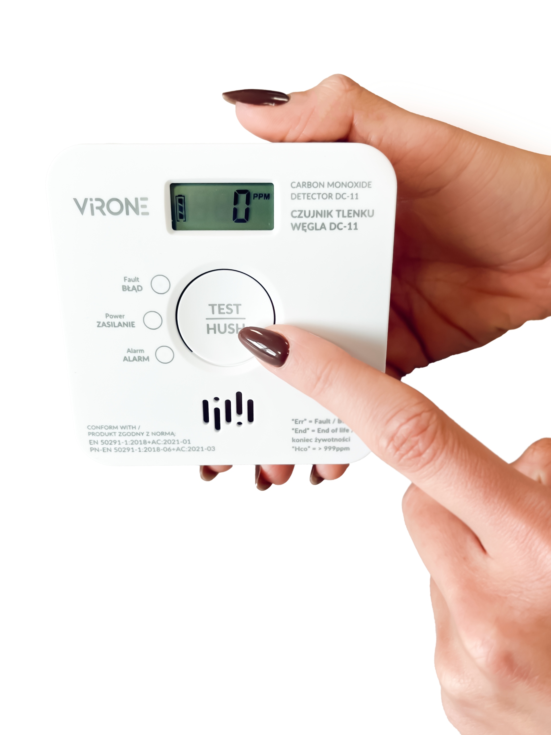 ? Funkcja testowania i wyciszania alarmu umożliwia ci samodzielne sprawdzenie poprawności działania urządzenia oraz chwilowe wyciszenie sygnału przy niskich stężeniach CO.