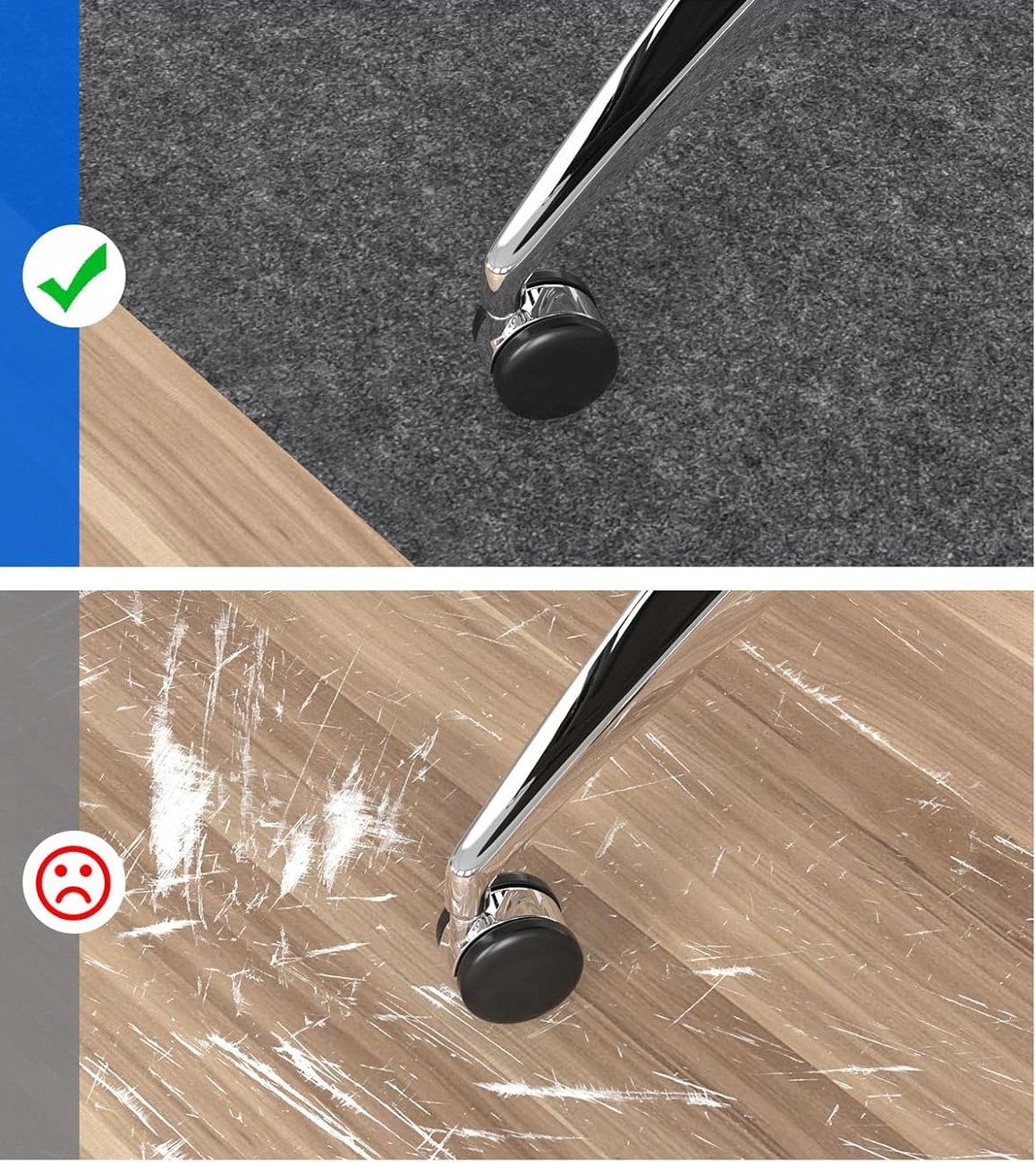 ✅ Idealna ochrona podłogi. Skutecznie zabezpiecza podłogi przed ścieraniem, zarysowaniami i uszkodzeniami spowodowanymi przez kółka krzeseł. Świetnie sprawdzi się na takich powierzchniach jak drewno, płytki, laminat i linoleum, wydłużając ich żywotność.