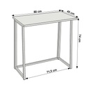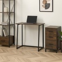 Biurko posiada lekki stelaż stalowy, wykonany z profili malowanych proszkowo na kolor czarny mat. Dzięki temu prezentuje się nowocześnie i elegancko, a dodatkowo jest łatwe do przenoszenia i przechowywania. Mechanizm składania pozwala szybko i bezproblemowo złożyć biurko, co sprawia, że świetnie sprawdza się w małych mieszkaniach, kawalerkach czy biurach typu home office.
