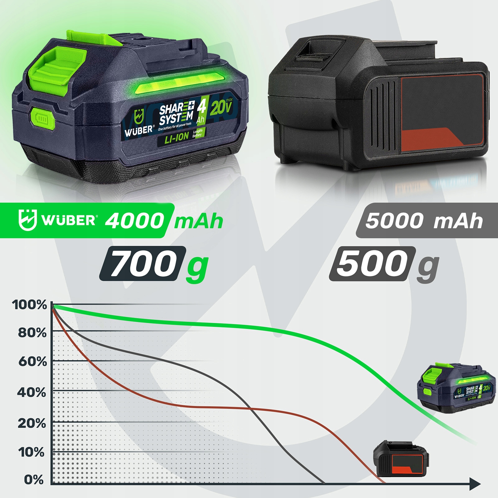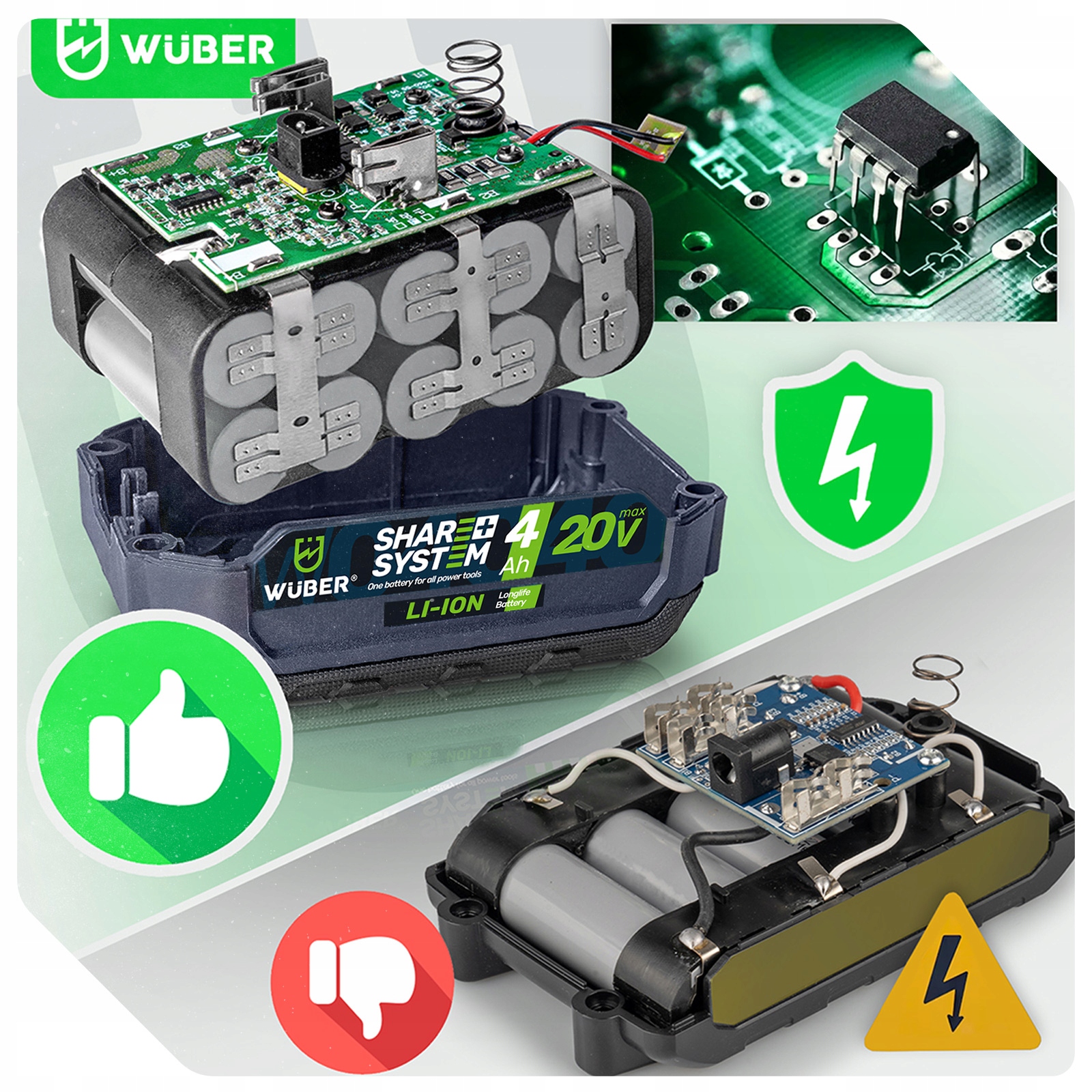 ✔️ Dzięki jednolitej platformie zasilania bateria może być stosowana w wielu elektronarzędziach WUBER, co zwiększa elastyczność i ogranicza konieczność posiadania kilku różnych akumulatorów.