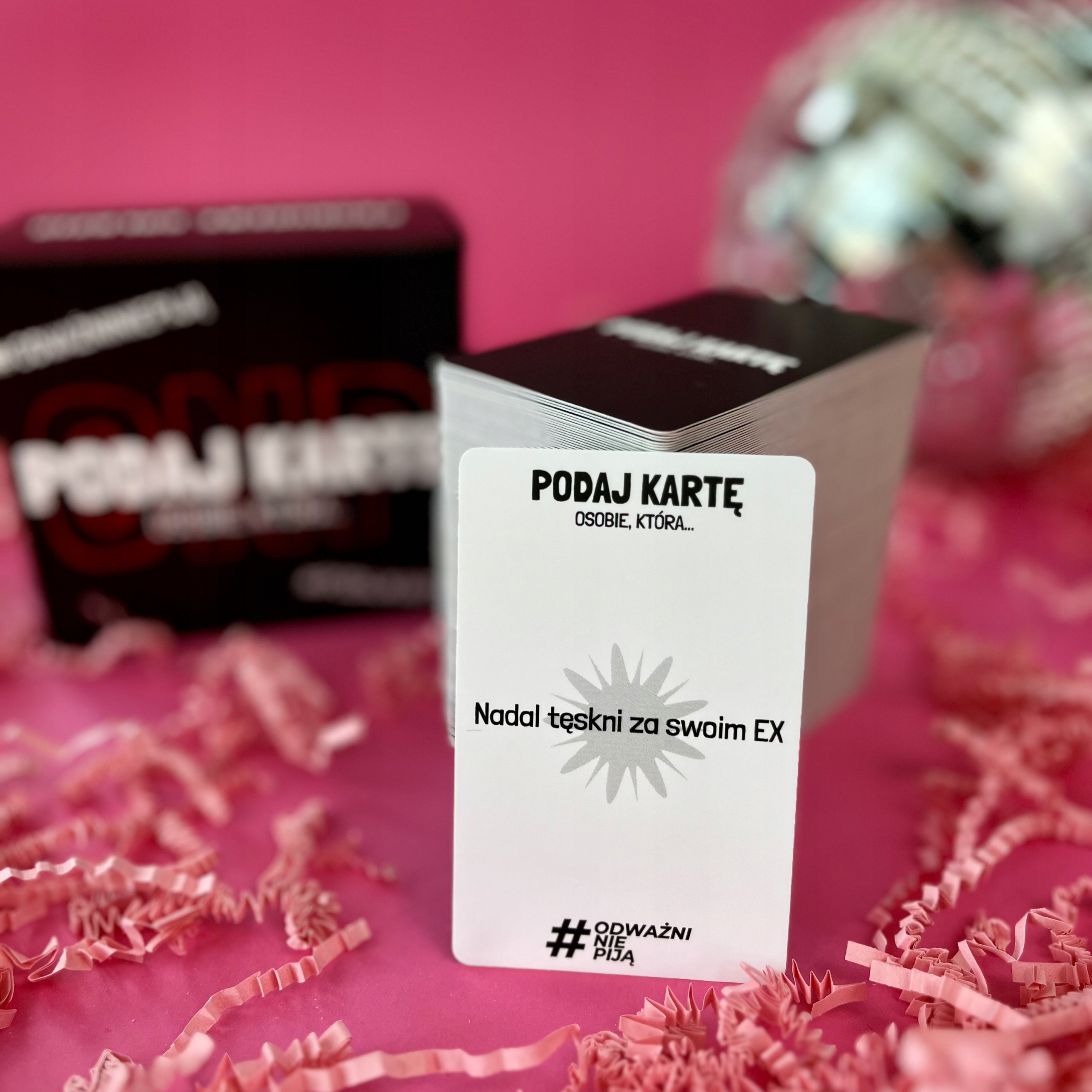 Gra Podaj Kartę z serii gier #OdważniNiePiją to edycja, w którą możesz zagrać ze swoimi znajomymi, których już dobrze znasz. Jest to świetne rozwiązanie na rozkręcenie każdej imprezy!