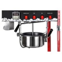 Profesjonalna maszyna do popcornu niemieckiej marki Royal Catering to połączenie dwóch urządzeń: maszyny do popcornu i witryny grzewczej. Wydajna grzałka szybko rozgrzewa olej, a szklana gablota z podświetleniem ładnie eksponuje gotowy produkt. Prezentowany komplet doskonale nadaje się do użytku profesjonalnego w kinach, kawiarniach, podczas festynów czy różnych imprez plenerowych itp. Maszyna do popcornu z witryną grzewczą to wysoka jakość za rozsądną cenę.