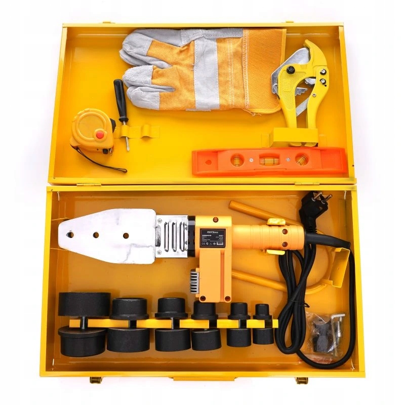 Zgrzewarka do rur plastikowych z wyświetlaczem LCD służy do zgrzewania rur i kształtek z polimerów (PE- polietylen, PP-polipropylen, PB-polibuten) stosowanych podczas wykonywania instalacji wody zimnej oraz ciepłej, a także centralnego ogrzewania.