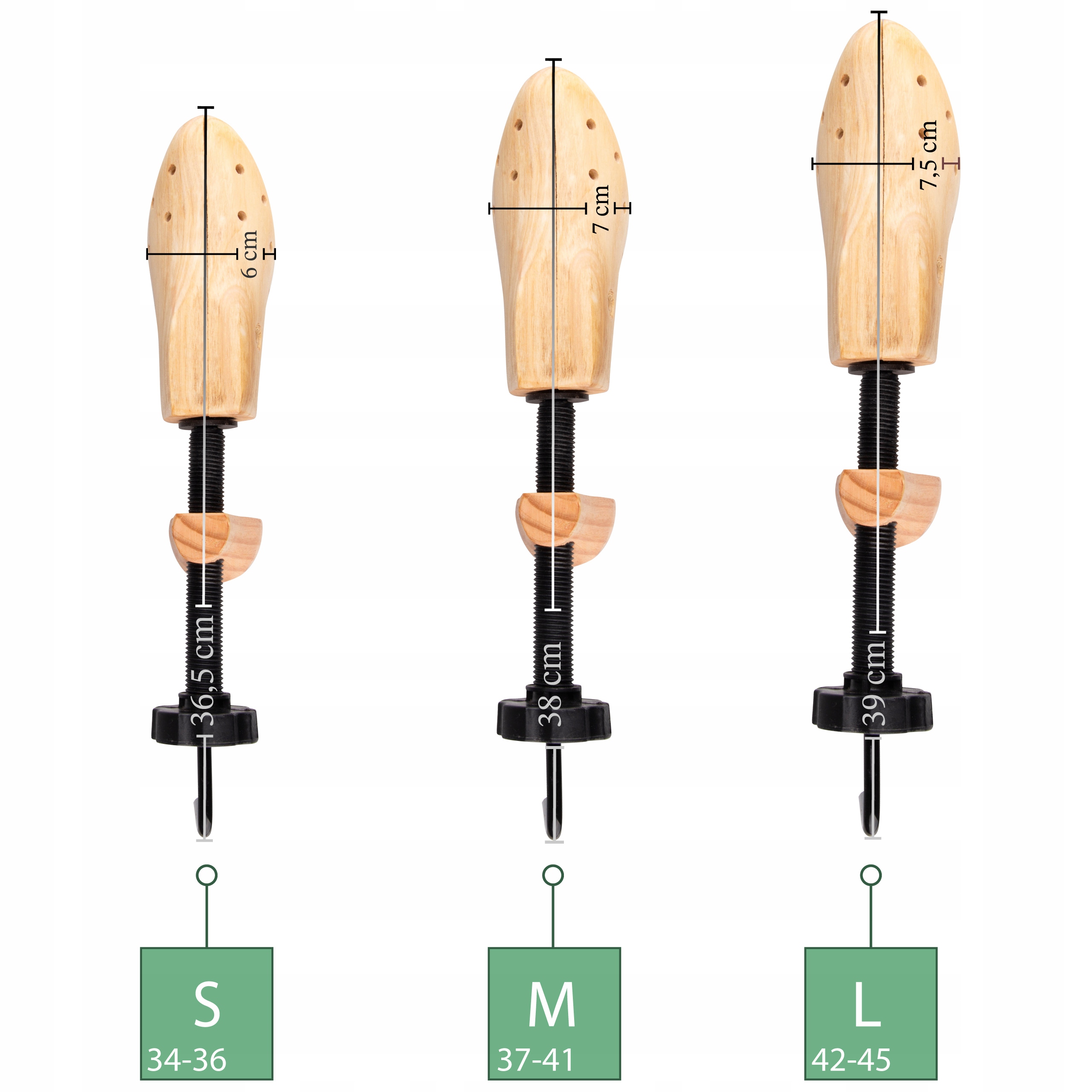 Metalowy mechanizm pozwala regulować długość i szerokość, a solidna konstrukcja z drewna dobrze współpracuje ze skórą naturalną. W połączeniu z pielęgnacją (np. szczotkowaniem czy stosowaniem sprayu) prawidła wspierają codzienną konserwację obuwia.
