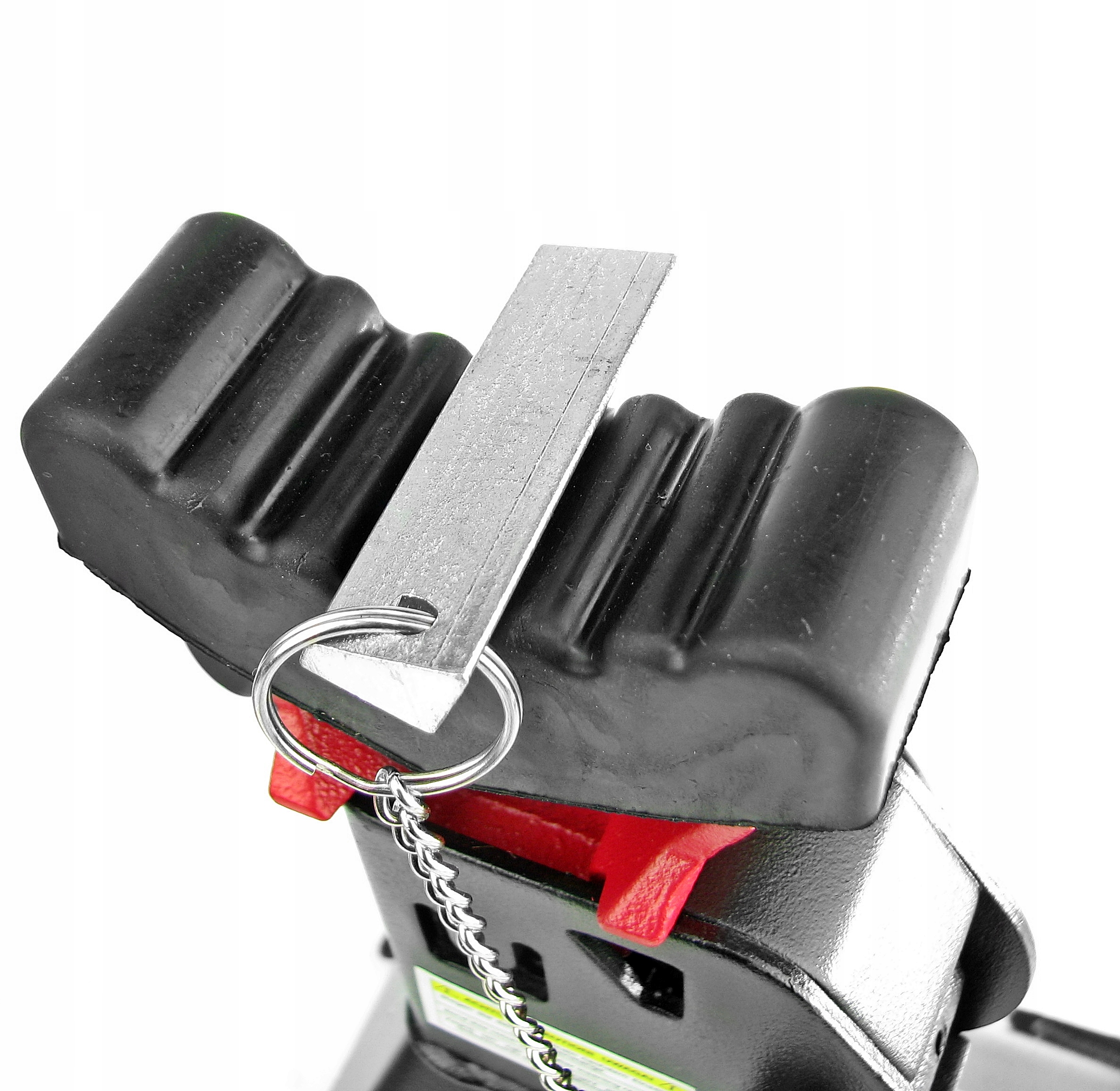 Specjalna, dodatkowa blokada w postaci bolca (pinu) zabezpiecza mechanizm zapadkowy przed niezamierzonym opuszczeniem kolumny podpory. Pin zaopatrzony jest w stalową linkę przymocowaną do korpusu kobyłki, co chroni go przed zgubieniem.