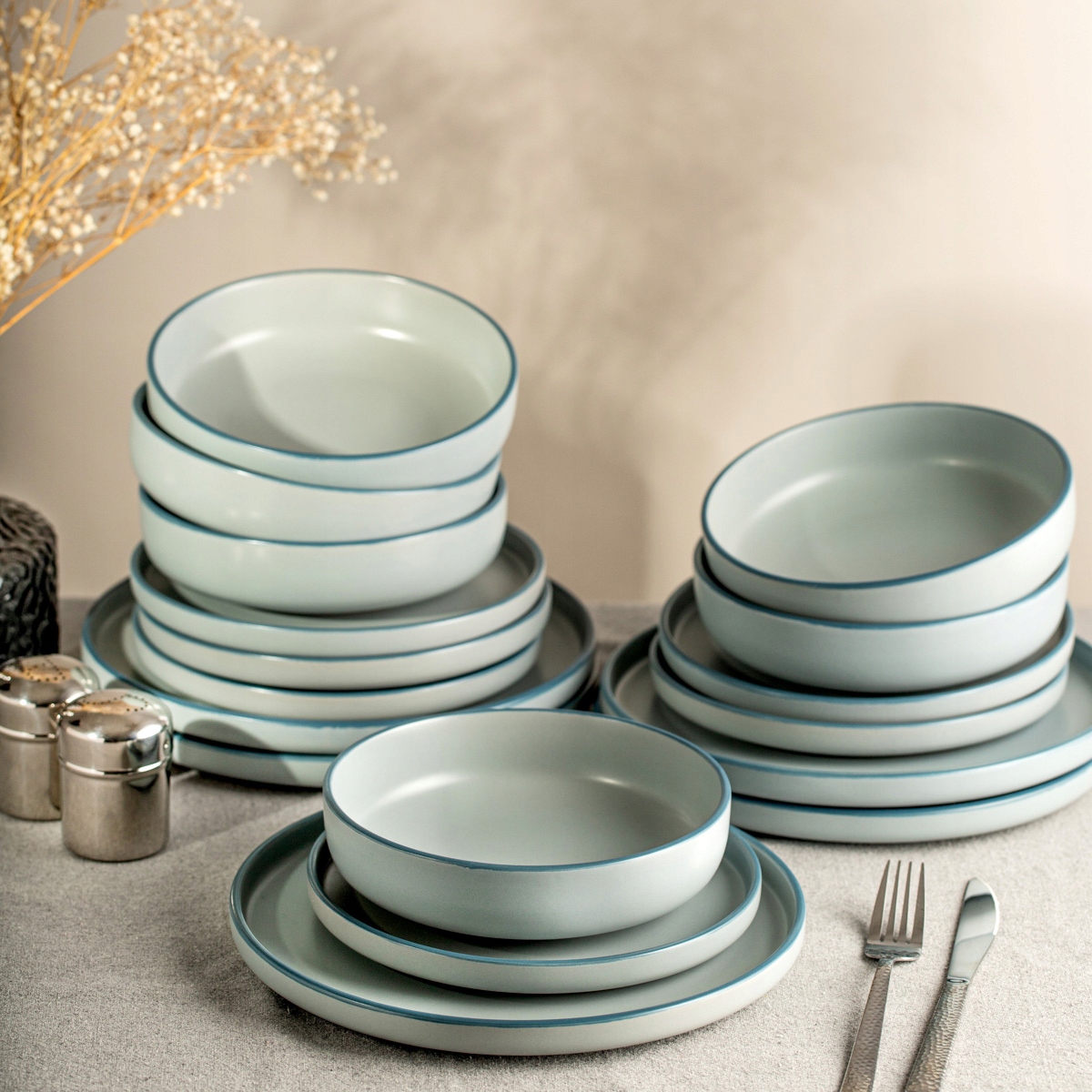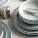 Zastawa stołowa niebieska MAVI pozwala na eleganckie serwowanie potraw dla 6 osób. Naczynia mają eleganckie, ponadczasowe wzornictwo, dzięki temu pięknie prezentują się na stole, ale nie przytłaczają wybranej aranżacji. Wysokie ranty sprawiają, że możesz serwować dania dużo wygodniej, a nakrycie stołu wygląda nowocześnie.