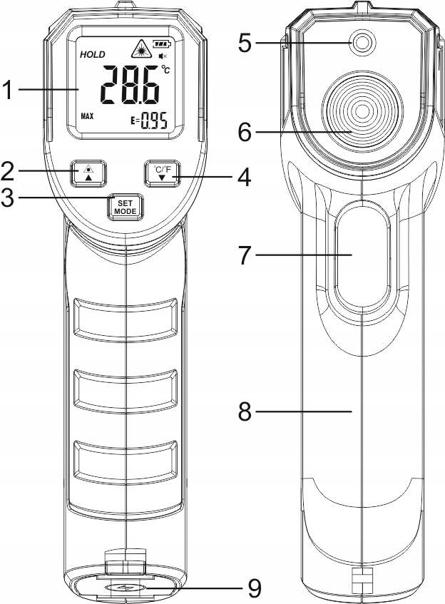 TERMOMETR BEZKONTAKTOWY NA PODCZERWIEŃ Z CELOWNIKIEM LASEROWYM I REGULACJĄ EMISYJNOŚCI
