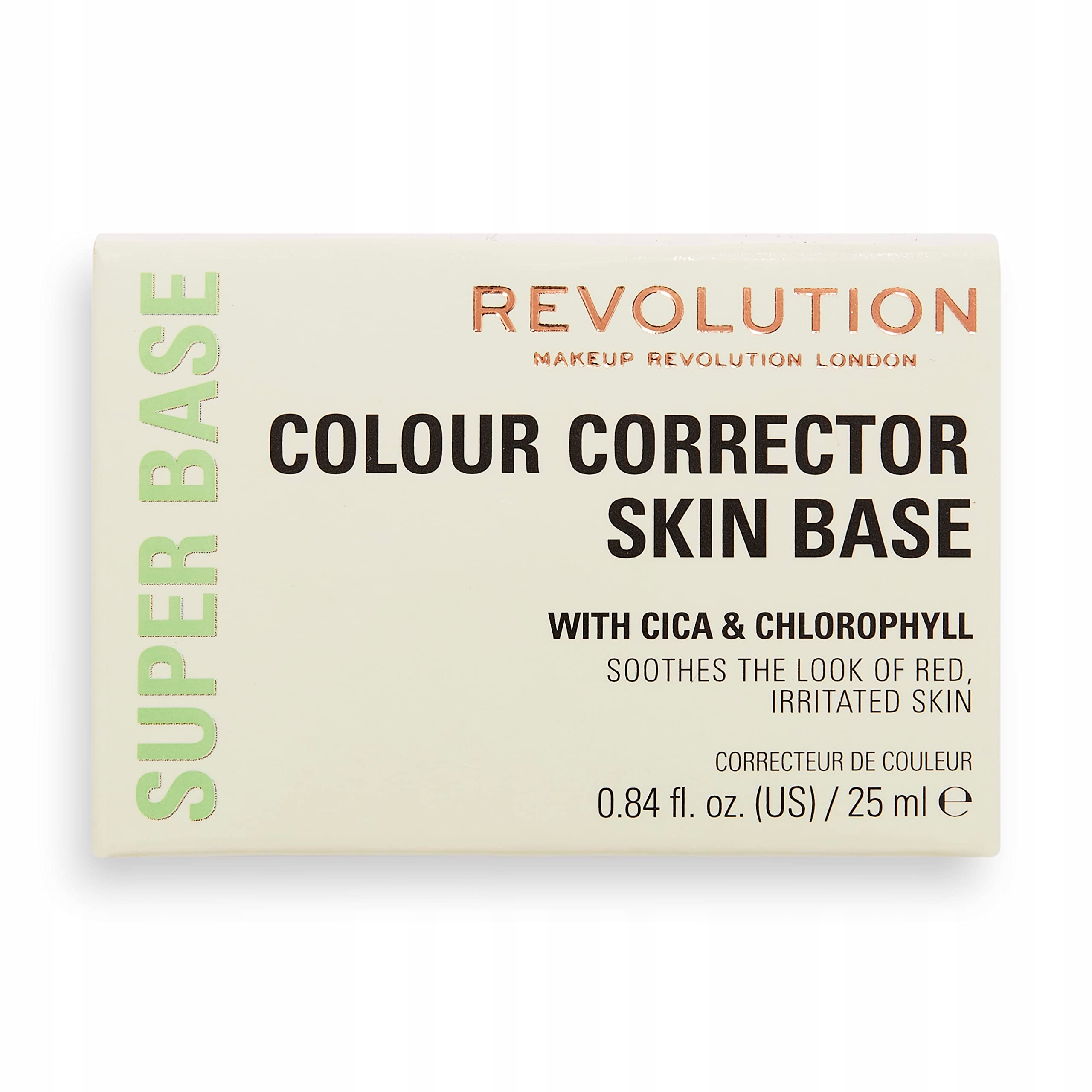 This multi-tasking formula helps to neutralise skin pigmentation using complementary colour theory and innovative natural ingredients. The Revolution Superbase Colour Correcting Green Primer contains Cica, to help strengthen your skin's natural barrier as well as Chlorophyll which has anti-inflammatory and anti-bacterial properties to help reduce redness. The innovative Green shade neutralises redness and evens out skin tone to create the perfect skin base for your makeup, this is recommended to be used with concealer or under foundation. How to use: Work a small amount of your preferred primer shade between your fingers before applying to areas of pigmentation on your face that you would like to target. Build the formula as needed and finish with your favourite Revolution Concealer or Foundation depending on desired coverage. To complete your colour corrected skin base, use our Yellow Superbase Primer to brighten and hydrate your skin further.