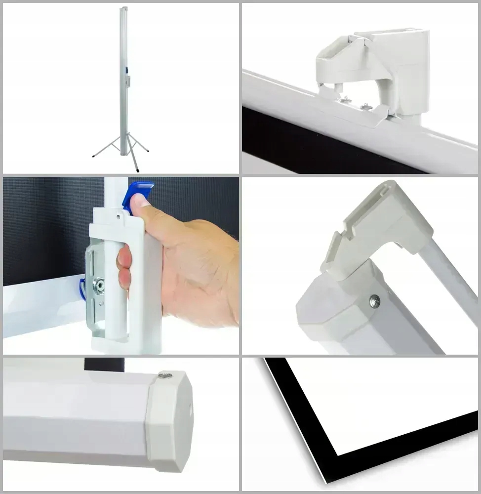 Ten model posiada łatwo rozkładany trójnóg, dzięki któremu całość konstrukcji jest bardzo stabilna. Dodatkowo statyw posiada teleskopową konstrukcję, która zapewnia płynną regulację wysokości. Wszystko to sprawia, że ekran jest mobilny i łatwy w transporcie. Warto skorzystać z niego, kiedy chcemy wyświetlać prezentacje handlowe oraz edukacyjne, jak również będzie idealnym uzupełnieniem kina domowego.