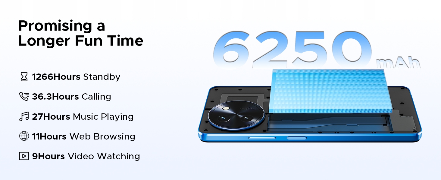 DOOGEE NOTE59PRO+ z baterią 6250 mAh, portem ładowania typu C i obsługą OTG, ten telefon nie tylko działa przez cały dzień, ale także ładuje się szybciej i z większą kompatybilnością. Pomimo ogromnej żywotności baterii, nadal jest lekki (199 g). Idealny jako telefon komórkowy dla seniorów dzięki intuicyjnej obsłudze i ergonomicznemu designowi. Inteligentna technologia w smukłej, lekkiej i wyrafinowanej konstrukcji.