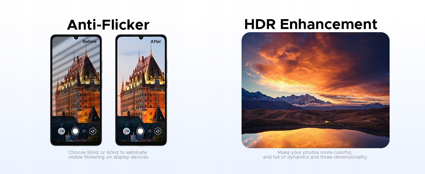Tylny aparat 50 MP AI i przedni aparat 8 MP rejestrują żywe i szczegółowe obrazy. Jego smukła konstrukcja sprawia, że jest idealny na każdą okazję, od podróży po selfie w domu, a wszystko to ze stylem i technologią. Ten telefon komórkowy z systemem Android 15 obsługuje NFC, Bluetooth 5.0, podwójne WiFi 2.4G/5G, FM i Google Pay. Przeglądaj, udostępniaj, płac i słuchaj radia bez ograniczeń.
