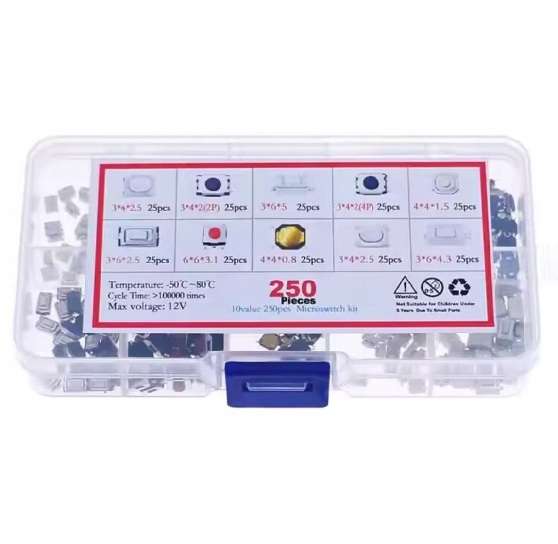 Razem 250 szt mikroprzełączników wraz z pudełkiem zestaw;