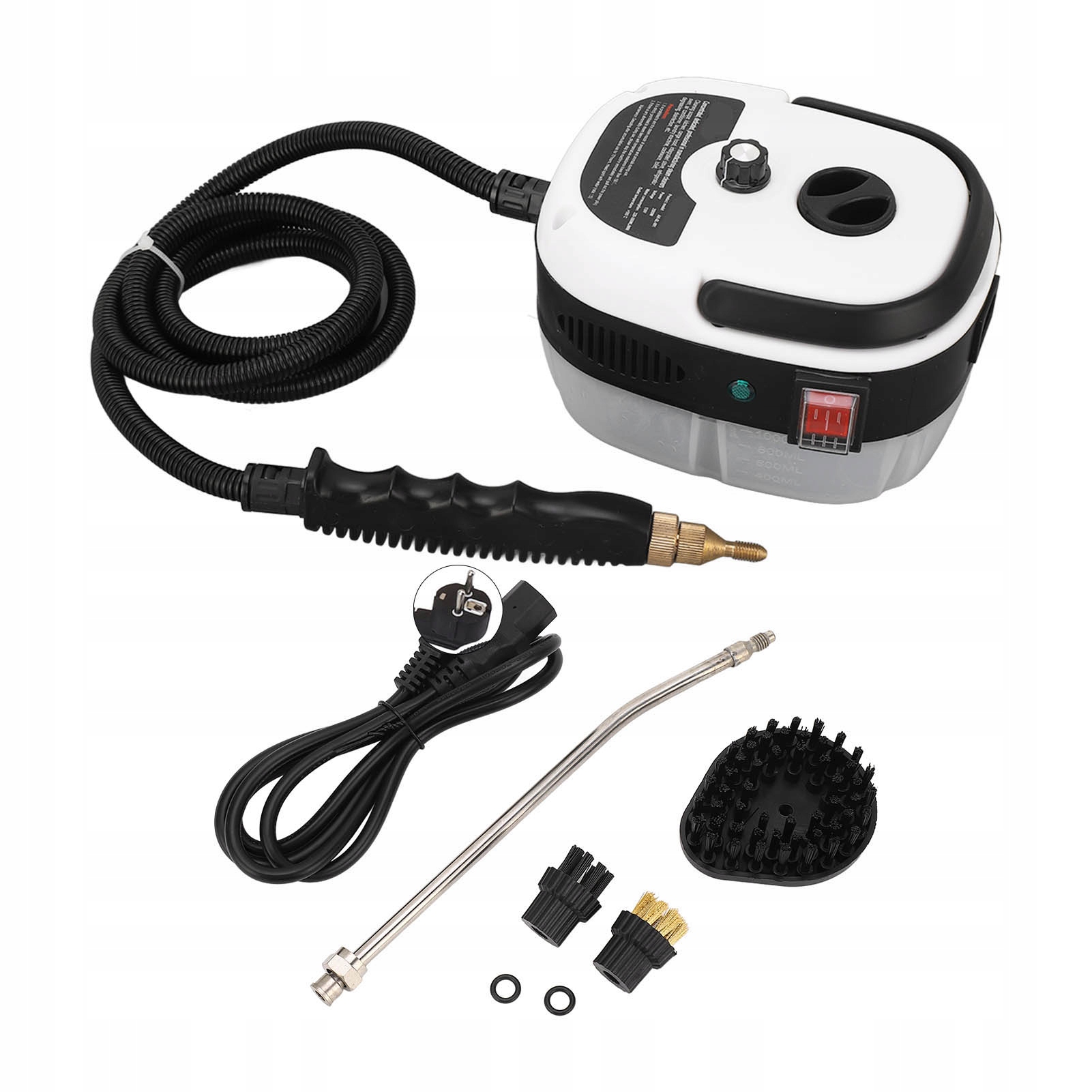 Funkcja:1. WYSOKA WYDAJNOŚĆ: Maszyna do czyszczenia parą ma moc znamionową 2500 W, jest wydajna i praktyczna, a zbiornik na wodę ma pojemność 1000 ml.
