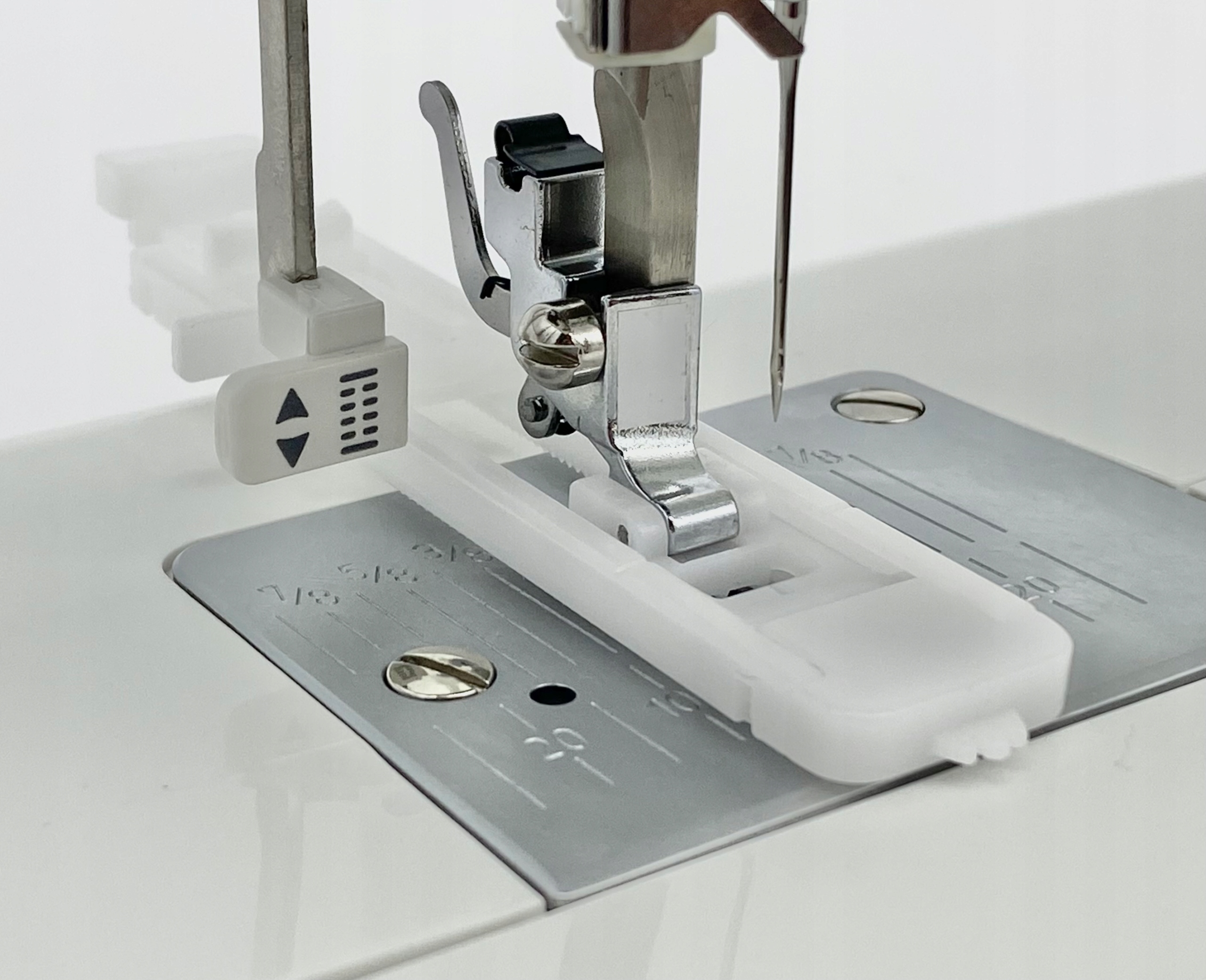 Warto zwrócić uwagę, że maszyna posiada funkcję regulacji docisku stopki, która przyda się podczas pracy z bardzo delikatnymi materiałami lub przy szyciu grubych rzeczy, wielu warstw jednocześnie.