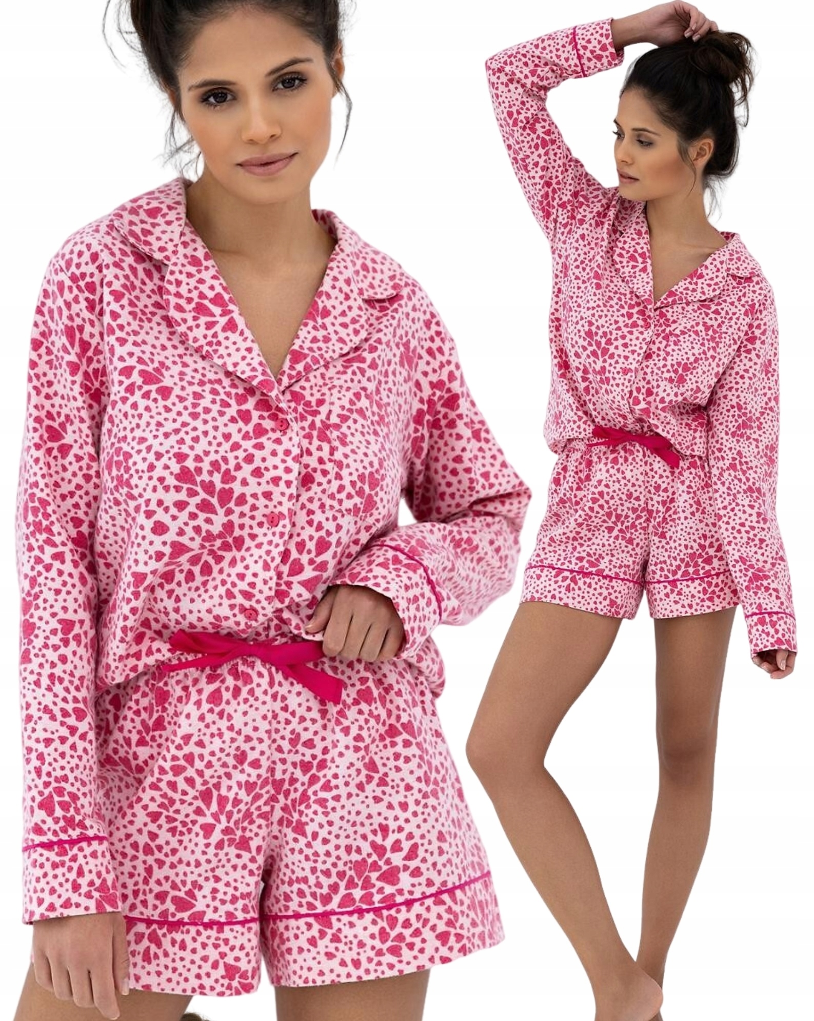 Wyprodukowana w Polsce piżama damska to idealny wybór dla kobiet, które cenią sobie komfort, ciepło i uroczy wygląd domowych stylizacji. Została uszyta z delikatnej flaneli bawełnianej w słodki wzór serduszek, która przyjemnie otula ciało i daje poczucie miękkości już od pierwszego założenia.