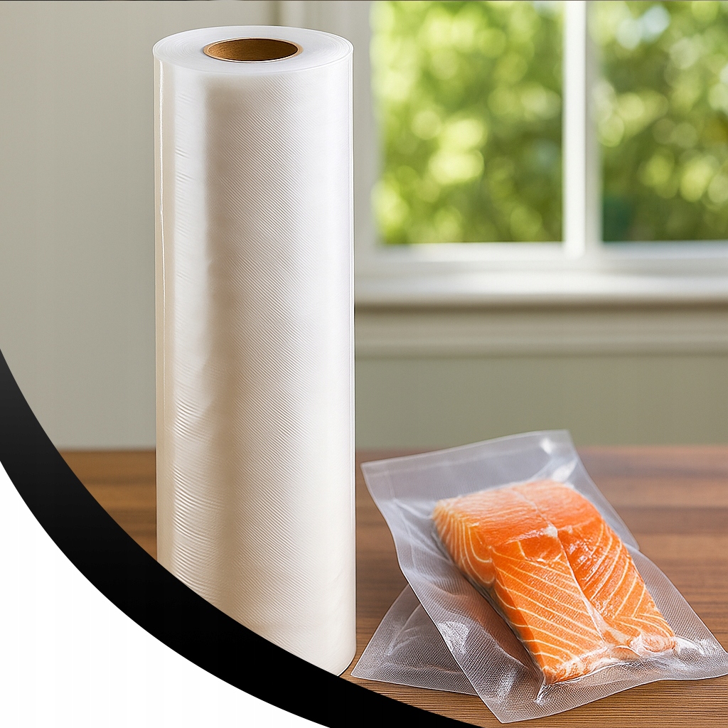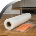 Folia wykonana jest z bezpiecznego tworzywa PA/PE, które nadaje się do bezpośredniego kontaktu z żywnością. Możesz pakować w nią zarówno świeże mięso, sery, ryby, warzywa, jak i produkty sypkie czy gotowe posiłki.