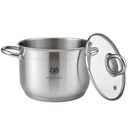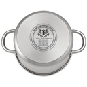 Garnek SOLID SILVER charakteryzuje się eleganckim satynowym wykończeniem wewnątrz, który doskonale komponuje się z każdym wnętrzem kuchennym. Średnica garnka wynosi 20 cm, a wysokość - 12 cm, co czyni go idealnym do przygotowywania małych porcji. Średnica pola grzewczego to 17 cm, co zapewnia optymalne wykorzystanie energii i równomierne gotowanie.