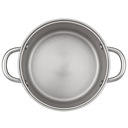 Srebrna powłoka i stal na uchwytach oraz rancie nadają garnkowi wyjątkowy styl – praktyczny w kuchni, efektowny na stole.