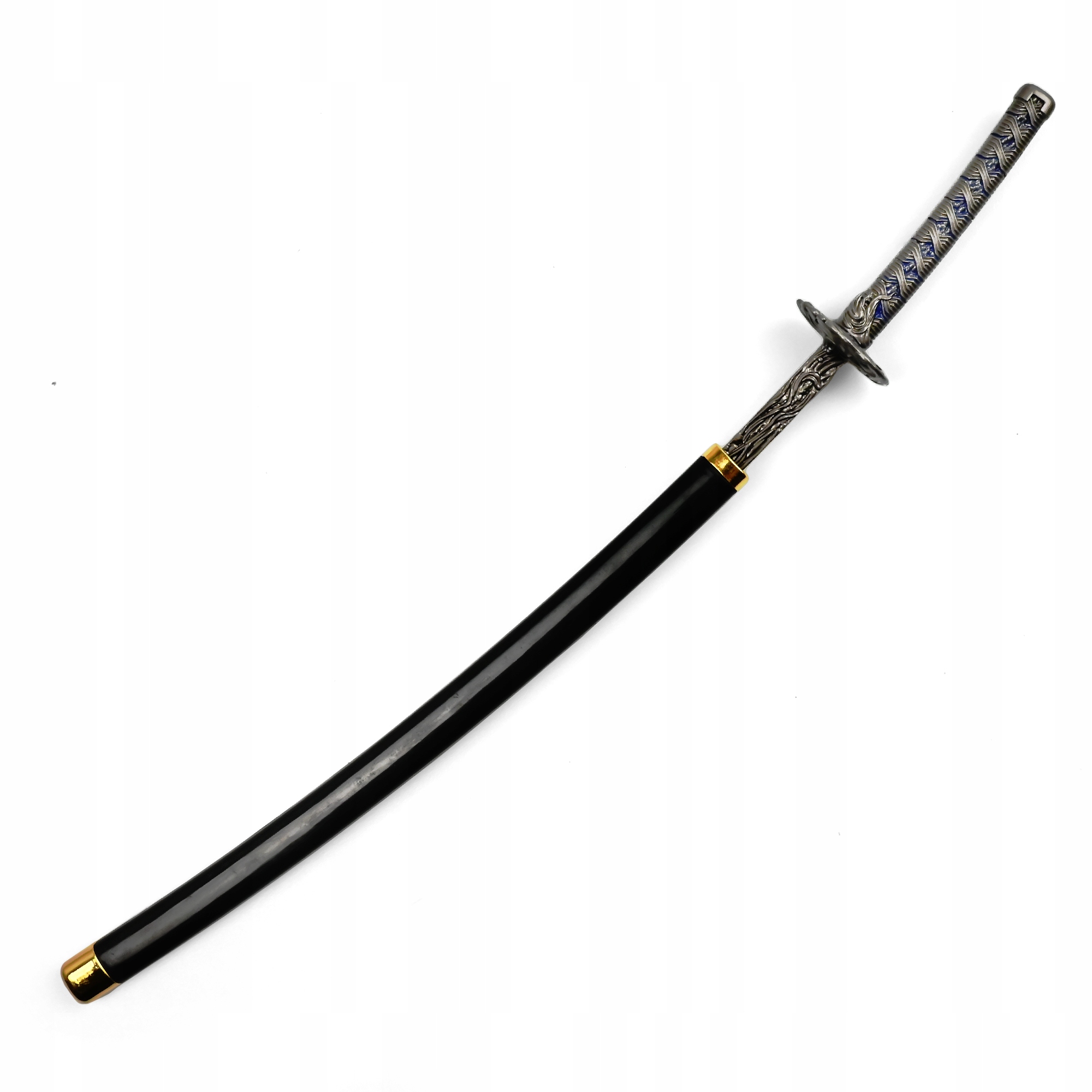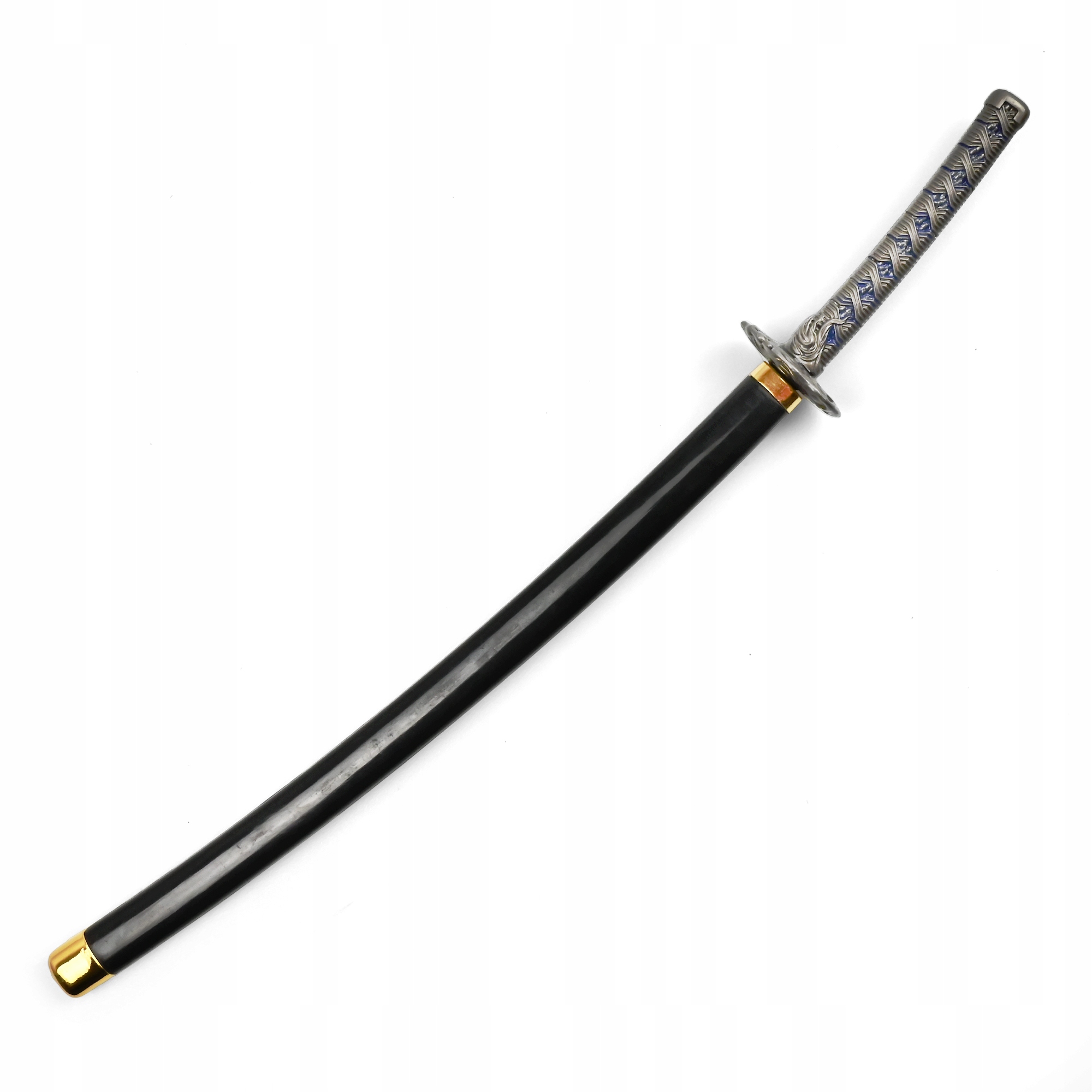 W całości wykonana z wysokiej jakości metalu katana lśni srebrnym wykończeniem z głęboko grawerowanymi wzorami przypominającymi światło gwiazd spływające po ostrzu. Jelec i rękojeść pokryte są fakturą przypominającą splątane korzenie lub kosmiczne macki, oddając klimat tajemniczych sił kształtujących mitologię Elden Ring. Uchwyt zdobi skomplikowany wzór z niebieskimi akcentami, nawiązującymi do potęgi gwiazd i zakazanej wiedzy. Lśniąca czarna pochwa ze złotymi zakończeniami tworzy elegancki kontrast wobec srebrnej klingi, wzmacniając jej wizualny urok.