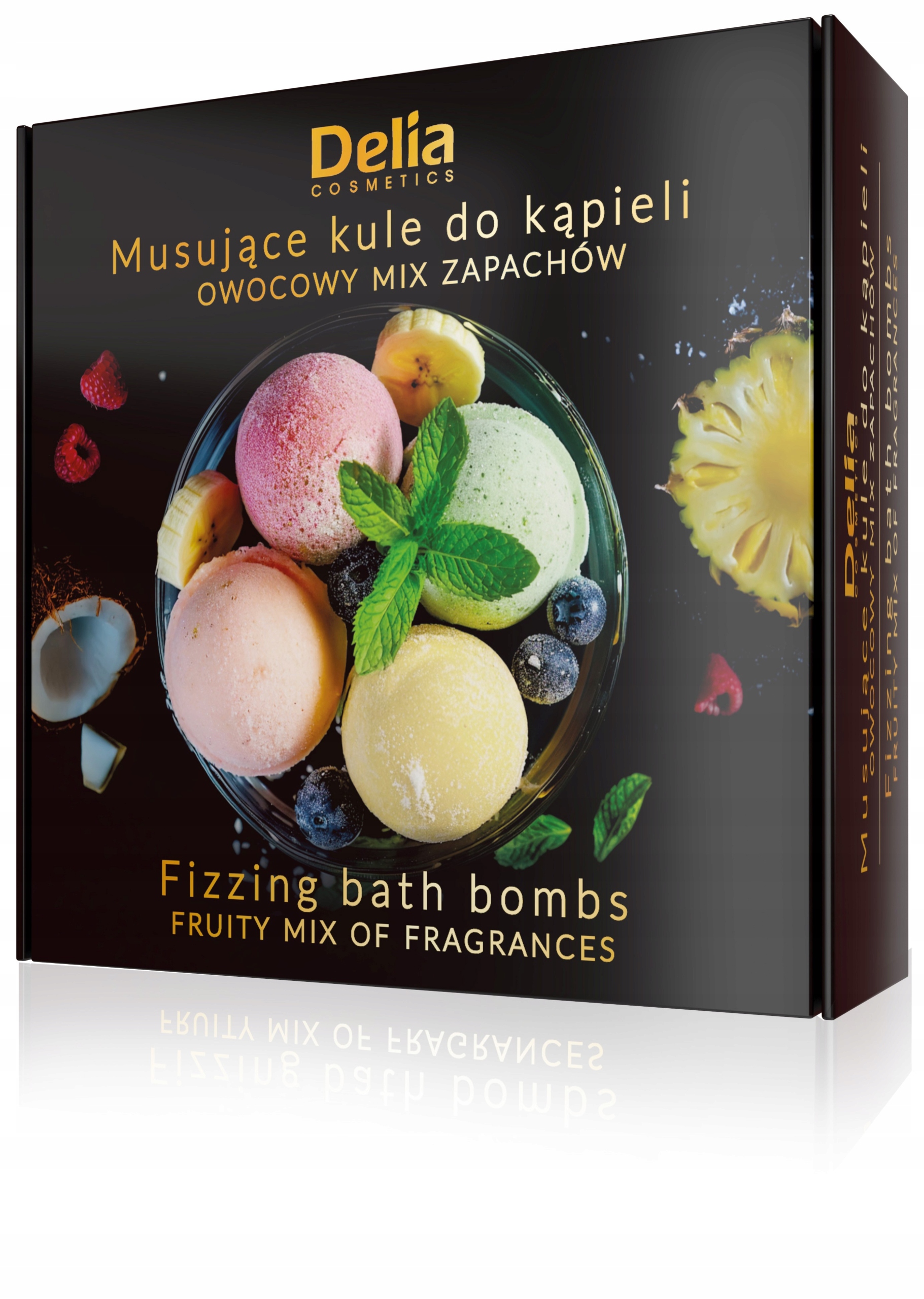 Zestaw czterech, musujących kul do kąpieli w czarnym pudełko z niezwykle apetycznym nadrukiem...Uwaga, zawartość nie nadaje się do jedzenia! Jest za to idealna do stworzenia atmosfery domowego spa we własnej łazience. Wystarczy odpakować i dodać kulę do wody w wannie. Wśród owocowych aromatów znajdziesz: